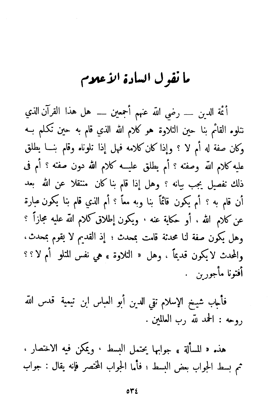 مَا تَقُولُ السَّادَةُ الْأَعْلَامُ أَئِمَّةُ الدِّينِ - رَضِيَ اللَّهُ عَنْهُمْ أَجْمَعِينَ -: