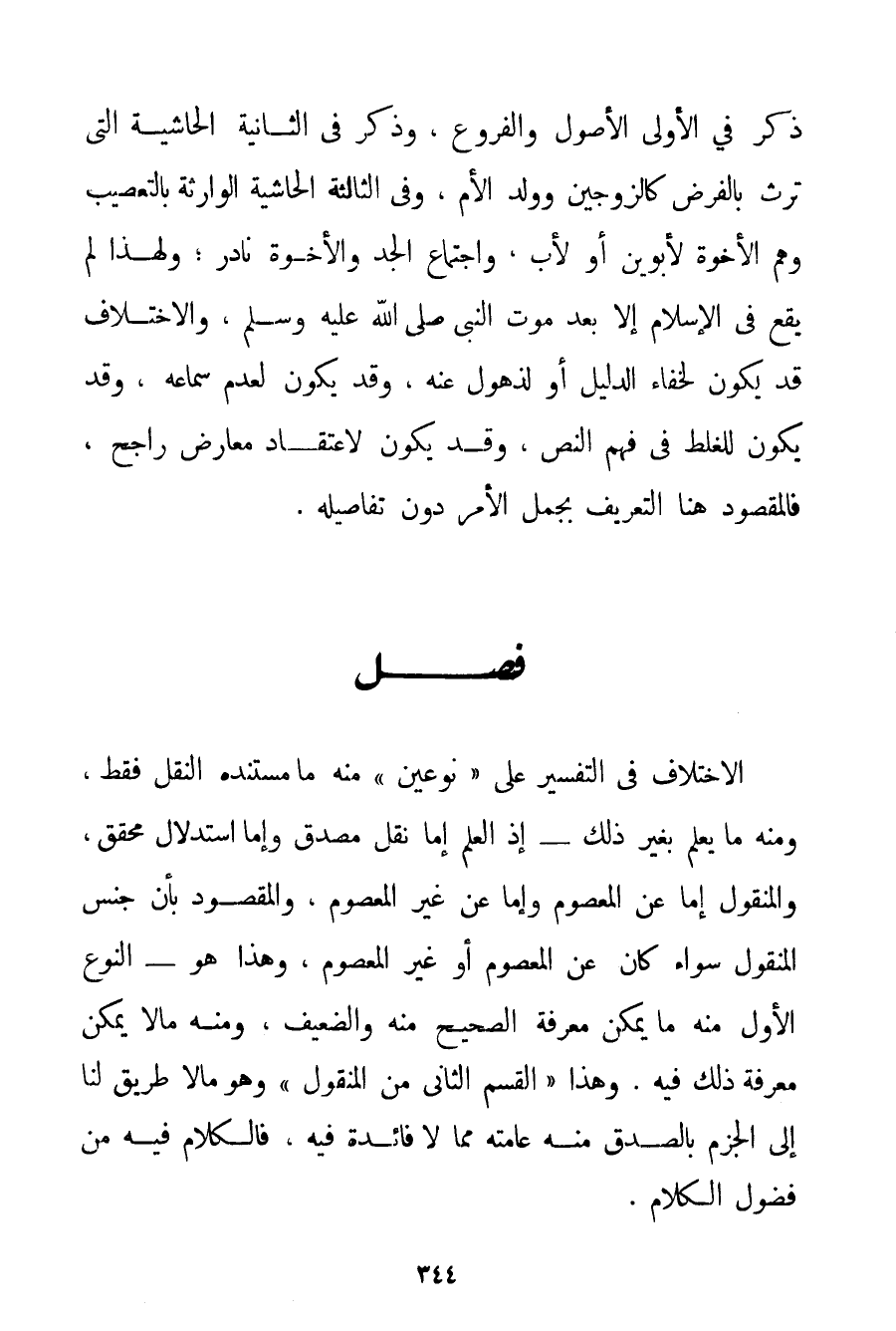 الِاخْتِلَافُ فِي التَّفْسِيرِ عَلَى " نَوْعَيْنِ " مِنْهُ مَا مُسْتَنَدُهُ النَّقْلُ فَقَطْ وَمِنْهُ مَا يُعْلَمُ بِغَيْرِ ذَلِكَ - إذْ الْعِلْمُ إمَّا نَقْلٌ مُصَدَّقٌ وَإِمَّا اسْتِدْلَالٌ مُحَقَّقٌ وَالْمَنْقُولُ إمَّا عَنْ الْمَعْصُومِ وَإِمَّا عَنْ غَيْرِ الْمَعْصُومِ وَالْمَقْصُودُ بِأَنَّ جِنْسَ الْمَنْقُولِ سَوَاءٌ كَانَ عَنْ الْمَعْصُومِ أَوْ غَيْرِ الْمَعْصُومِ - وَهَذَا هُوَ النَّوْعُ الْأَوَّلُ مِنْهُ مَا يُمْكِنُ مَعْرِفَةُ الصَّحِيحِ مِنْهُ وَالضَّعِيفِ وَمِنْهُ مَا لَا يُمْكِنُ مَعْرِفَةُ ذَلِكَ فِيهِ. وَهَذَا " الْقِسْمُ الثَّانِي مِنْ الْمَنْقُولِ " وَهُوَ مَا لَا طَرِيقَ لَنَا إلَى الْجَزْمِ بِالصِّدْقِ مِنْهُ عَامَّتُهُ مِمَّا لَا فَائِدَةَ فِيهِ فَالْكَلَامُ فِيهِ مِنْ فُضُولِ الْكَلَامِ.