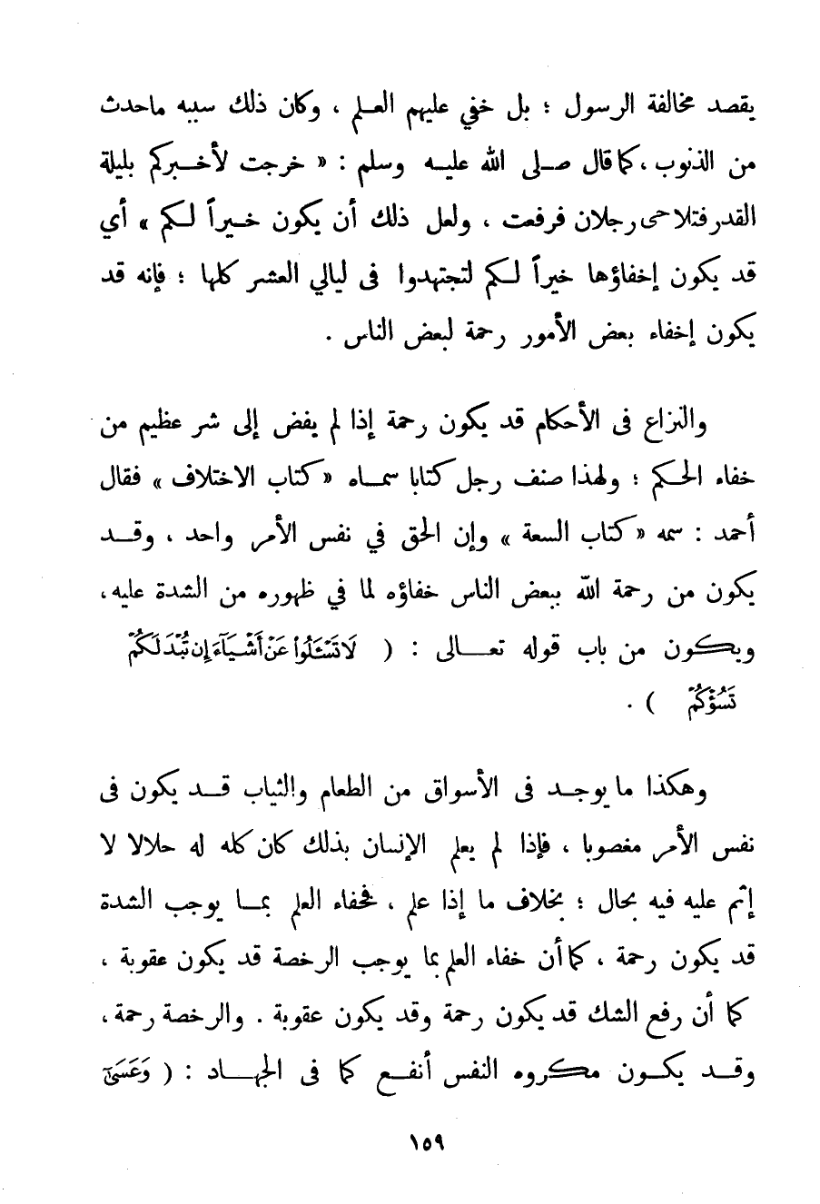 يَقْصِدُ مُخَالَفَةَ الرَّسُولِ؛ بَلْ خَفِيَ عَلَيْهِمْ الْعِلْمُ وَكَانَ ذَلِكَ سَبَبُهُ مَا حَدَثَ مِنْ الذُّنُوبِ كَمَا قَالَ صَلَّى اللَّهُ عَلَيْهِ وَسَلَّمَ {خَرَجْت لِأُخْبِرَكُمْ بِلَيْلَةِ الْقَدْرِ فَتَلَاحَى رَجُلَانِ فَرُفِعَتْ وَلَعَلَّ ذَلِكَ أَنْ يَكُونَ خَيْرًا لَكُمْ} أَيْ قَدْ يَكُونُ إخْفَاؤُهَا خَيْرًا لَكُمْ لِتَجْتَهِدُوا فِي لَيَالِي الْعَشْرِ كُلِّهَا؛ فَإِنَّهُ قَدْ يَكُونُ إخْفَاءُ بَعْضِ الْأُمُورِ رَحْمَةً لِبَعْضِ النَّاسِ. وَالنِّزَاعُ فِي الْأَحْكَامِ قَدْ يَكُونُ رَحْمَةً إذَا لَمْ يُفْضِ إلَى شَرٍّ عَظِيمٍ مِنْ خَفَاءِ الْحُكْمِ؛ وَلِهَذَا صَنَّفَ رَجُلٌ كِتَابًا سَمَّاهُ " كِتَابُ الِاخْتِلَافِ " فَقَالَ أَحْمَد: سَمِّهِ " كِتَابَ السِّعَةِ " وَإِنَّ الْحَقَّ فِي نَفْسِ الْأَمْرِ وَاحِدٌ وَقَدْ يَكُونُ مِنْ رَحْمَةِ اللَّهِ بِبَعْضِ النَّاسِ خَفَاؤُهُ لِمَا فِي ظُهُورِهِ مِنْ الشِّدَّةِ عَلَيْهِ وَيَكُونُ مِنْ بَابِ قَوْله تَعَالَى {لَا تَسْأَلُوا عَنْ أَشْيَاءَ إنْ تُبْدَ لَكُمْ تَسُؤْكُمْ} . وَهَكَذَا مَا يُوجَدُ فِي الْأَسْوَاقِ مِنْ الطَّعَامِ وَالثِّيَابِ قَدْ يَكُونُ فِي نَفْسِ الْأَمْرِ مَغْصُوبًا فَإِذَا لَمْ يَعْلَمُ الْإِنْسَان بِذَلِكَ كَانَ كُلُّهُ لَهُ حَلَالًا لَا إثْمَ عَلَيْهِ فِيهِ بِحَالِ؛ بِخِلَافِ مَا إذَا عَلِمَ فَخَفَاءُ الْعِلْمِ بِمَا يُوجِبُ الشِّدَّةَ قَدْ يَكُونُ رَحْمَةً كَمَا أَنَّ خَفَاءَ الْعِلْمِ بِمَا يُوجِبُ الرُّخْصَةَ قَدْ يَكُونُ عُقُوبَةً كَمَا أَنَّ رَفْعَ الشَّكِّ قَدْ يَكُونُ رَحْمَةً وَقَدْ يَكُونُ عُقُوبَةً. وَالرُّخْصَةُ رَحْمَةٌ وَقَدْ يَكُونُ مَكْرُوهُ النَّفْسِ أَنْفَعَ كَمَا فِي الْجِهَادِ: {وَعَسَى