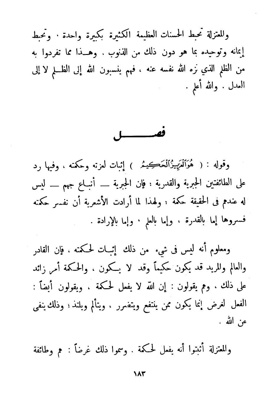 وَقَوْلُهُ: {هُوَ الْعَزِيزُ الْحَكِيمُ} إثْبَاتٌ لِعِزَّتِهِ وَحِكْمَتِهِ وَفِيهَا رَدٌّ عَلَى الطَّائِفَتَيْنِ الْجَبْرِيَّةِ وَالْقَدَرِيَّةِ؛ فَإِنَّ الْجَبْرِيَّةَ - أَتْبَاعَ جَهْمٍ - لَيْسَ لَهُ عِنْدَهُمْ فِي الْحَقِيقَةِ حِكْمَةٌ؛ وَلِهَذَا لَمَّا أَرَادَتْ الْأَشْعَرِيَّةُ أَنْ تُفَسِّرَ حِكْمَتَهُ فَسَّرُوهَا إمَّا بِالْقُدْرَةِ وَإِمَّا بِالْعِلْمِ وَإِمَّا بِالْإِرَادَةِ. وَمَعْلُومٌ أَنَّهُ لَيْسَ فِي شَيْءٍ مِنْ ذَلِكَ إثْبَاتٌ لِحِكْمَتِهِ فَإِنَّ الْقَادِرَ وَالْعَالِمَ وَالْمُرِيدَ قَدْ يَكُونُ حَكِيمًا وَقَدْ لَا يَكُونُ وَالْحِكْمَةُ أَمْرٌ زَائِدٌ عَلَى ذَلِكَ وَهُمْ يَقُولُونَ: إنَّ اللَّهَ لَا يَفْعَلُ لِحِكْمَةِ وَيَقُولُونَ أَيْضًا: الْفِعْلُ لِغَرَضِ إنَّمَا يَكُونُ مِمَّنْ يَنْتَفِعُ وَيَتَضَرَّرُ وَيَتَأَلَّمُ وَيَلْتَذُّ؛ وَذَلِكَ يُنْفَى عَنْ اللَّهِ. وَالْمُعْتَزِلَةُ أَثْبَتُوا أَنَّهُ يَفْعَلُ لِحِكْمَةِ. وَسَمَّوْا ذَلِكَ غَرَضًا: هُمْ وَطَائِفَةٌ
