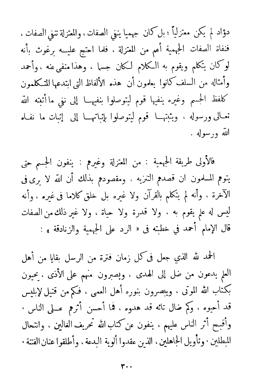 دؤاد لَمْ يَكُنْ مُعْتَزِلِيًّا؛ بَلْ كَانَ جهميا يَنْفِي الصِّفَاتِ وَالْمُعْتَزِلَةُ تَنْفِي الصِّفَاتِ فنفاة الصِّفَاتِ الْجَهْمِيَّة أَعَمُّ مِنْ الْمُعْتَزِلَةِ فَلَمَّا احْتَجَّ عَلَيْهِ بُرْغُوثٌ بِأَنَّهُ لَوْ كَانَ يَتَكَلَّمُ وَيَقُومُ بِهِ الْكَلَامُ لَكَانَ جِسْمًا وَهَذَا مَنْفِيٌّ عَنْهُ وَأَحْمَد وَأَمْثَالُهُ مِنْ السَّلَفِ كَانُوا يَعْلَمُونَ أَنَّ هَذِهِ الْأَلْفَاظَ الَّتِي ابْتَدَعَهَا الْمُتَكَلِّمُونَ كَلَفْظِ الْجِسْمِ وَغَيْرِهِ يَنْفِيهَا قَوْمٌ لِيَتَوَصَّلُوا بِنَفْيِهَا إلَى نَفْيِ مَا أَثْبَتَهُ اللَّهُ تَعَالَى وَرَسُولُهُ وَيُثْبِتُهَا قَوْمٌ لِيَتَوَصَّلُوا بِإِثْبَاتِهَا إلَى إثْبَاتِ مَا نَفَاهُ اللَّهُ وَرَسُولُهُ. فَالْأُولَى طَرِيقَةُ الْجَهْمِيَّة: مِنْ الْمُعْتَزِلَةِ وَغَيْرِهِمْ: يَنْفُونَ الْجِسْمَ حَتَّى يَتَوَهَّمَ الْمُسْلِمُونَ أَنَّ قَصْدَهُمْ التَّنْزِيهُ وَمَقْصُودُهُمْ بِذَلِكَ أَنَّ اللَّهَ لَا يُرَى فِي الْآخِرَةِ وَأَنَّهُ لَمْ يَتَكَلَّمْ بِالْقُرْآنِ وَلَا غَيْرِهِ بَلْ خَلَقَ كَلَامًا فِي غَيْرِهِ وَأَنَّهُ لَيْسَ لَهُ عِلْمٌ يَقُومُ بِهِ وَلَا قُدْرَةٌ وَلَا حَيَاةٌ وَلَا غَيْرُ ذَلِكَ مِنْ الصِّفَاتِ قَالَ الْإِمَامُ أَحْمَد فِي خُطْبَتِهِ فِي " الرَّدِّ عَلَى الْجَهْمِيَّة وَالزَّنَادِقَةِ ": الْحَمْدُ لِلَّهِ الَّذِي جَعَلَ فِي كُلِّ زَمَانٍ فَتْرَةً مِنْ الرُّسُلِ بَقَايَا مِنْ أَهْلِ الْعِلْمِ يَدْعُونَ مَنْ ضَلَّ إلَى الْهُدَى وَيَصْبِرُونَ مِنْهُمْ عَلَى الْأَذَى يُحْيُونَ بِكِتَابِ اللَّهِ الْمَوْتَى وَيُبَصِّرُونَ بِنُورِهِ أَهْلَ الْعَمَى فَكَمْ مِنْ قَتِيلٍ لإبليس قَدْ أَحْيَوْهُ وَكَمْ ضَالٍّ تَائِهٍ قَدْ هَدَوْهُ فَمَا أَحْسَنَ أَثَرَهُمْ عَلَى النَّاسِ وَأَقْبَحَ أَثَرَ النَّاسِ عَلَيْهِمْ يَنْفُونَ عَنْ كِتَابِ اللَّهِ تَحْرِيفَ الْغَالِينَ وَانْتِحَالَ الْمُبْطِلِينَ وَتَأْوِيلَ الْجَاهِلِينَ الَّذِينَ عَقَدُوا أَلْوِيَةَ الْبِدْعَةِ وَأَطْلَقُوا عِنَانَ الْفِتْنَةِ