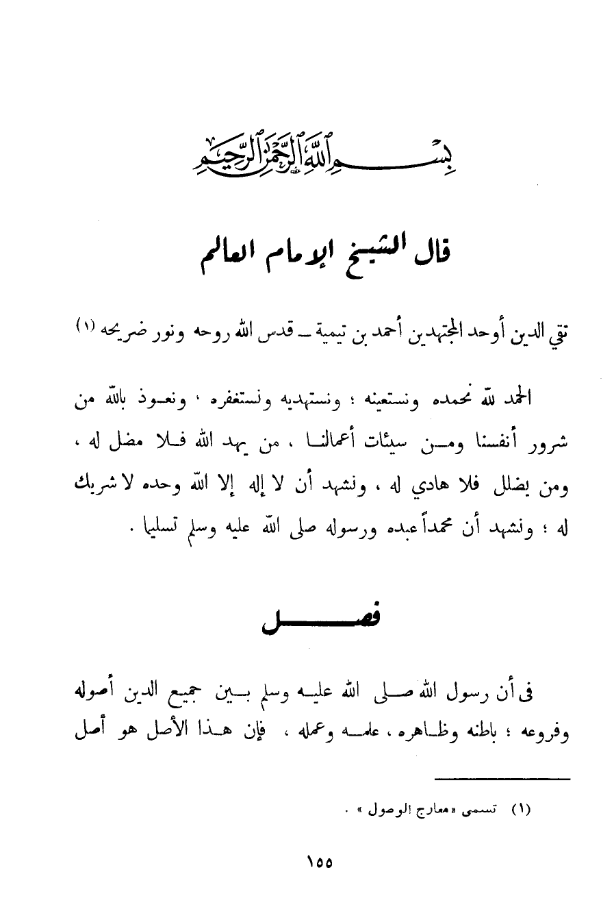 قَالَ الشَّيْخُ الْإِمَامُ الْعَالِمُ تَقِيُّ الدِّينِ أَوْحَدُ الْمُجْتَهِدِينَ أَحْمَد ابْنُ تَيْمِيَّة - قَدَّسَ اللَّهُ رُوحَهُ وَنَوَّرَ ضَرِيحَهُ -: