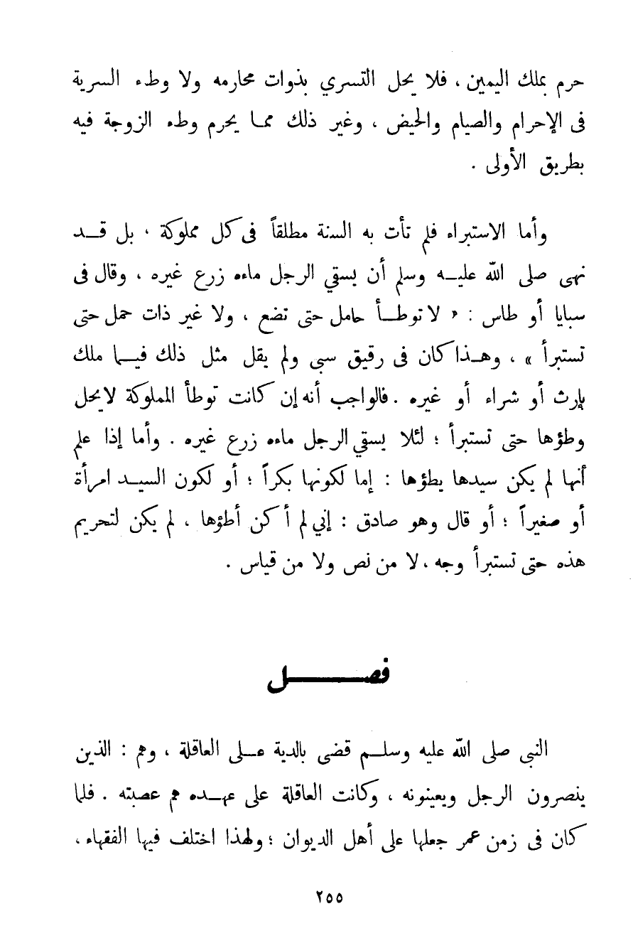 حُرِّمَ بِمِلْكِ الْيَمِينِ فَلَا يَحِلُّ التَّسَرِّي بِذَوَاتِ مَحَارِمِهِ وَلَا وَطْءُ السَّرِيَّةِ فِي الْإِحْرَامِ وَالصِّيَامِ وَالْحَيْضِ وَغَيْرِ ذَلِكَ مِمَّا يُحَرِّمُ وَطْءَ الزَّوْجَةِ فِيهِ بِطَرِيقِ الْأَوْلَى. وَأَمَّا الِاسْتِبْرَاءُ فَلَمْ تَأْتِ بِهِ السُّنَّةُ مُطْلَقًا فِي كُلِّ مَمْلُوكَةٍ بَلْ قَدْ {نَهَى صَلَّى اللَّهُ عَلَيْهِ وَسَلَّمَ أَنْ يُسْقِيَ الرَّجُلُ مَاءَهُ زَرْعَ غَيْرِهِ} {وَقَالَ فِي سَبَايَا أوطاس: لَا تُوطَأُ حَامِلٌ حَتَّى تَضَعَ وَلَا غَيْرُ ذَاتِ حَمْلٍ حَتَّى تُسْتَبْرَأَ} وَهَذَا كَانَ فِي رَقِيقِ سَبْيٍ وَلَمْ يَقُلْ مِثْلَ ذَلِكَ فِيمَا مَلَكَ بِإِرْثٍ أَوْ شِرَاءٍ أَوْ غَيْرِهِ. فَالْوَاجِبُ أَنَّهُ إنْ كَانَتْ تُوطَأُ الْمَمْلُوكَةُ لَا يَحِلُّ وَطْؤُهَا حَتَّى تُسْتَبْرَأَ؛ لِئَلَّا يُسْقِيَ الرَّجُلُ مَاءَهُ زَرْعَ غَيْرِهِ. وَأَمَّا إذَا عَلِمَ أَنَّهَا لَمْ يَكُنْ سَيِّدُهَا يَطَؤُهَا: إمَّا لِكَوْنِهَا بِكْرًا؛ أَوْ لِكَوْنِ السَّيِّدِ امْرَأَةً أَوْ صَغِيرًا؛ أَوْ قَالَ وَهُوَ صَادِقٌ: إنِّي لَمْ أَكُنْ أَطَؤُهَا لَمْ يَكُنْ لِتَحْرِيمِ هَذِهِ حَتَّى تُسْتَبْرَأَ وَجْهٌ لَا مِنْ نَصٍّ وَلَا مِنْ قِيَاسٍ.