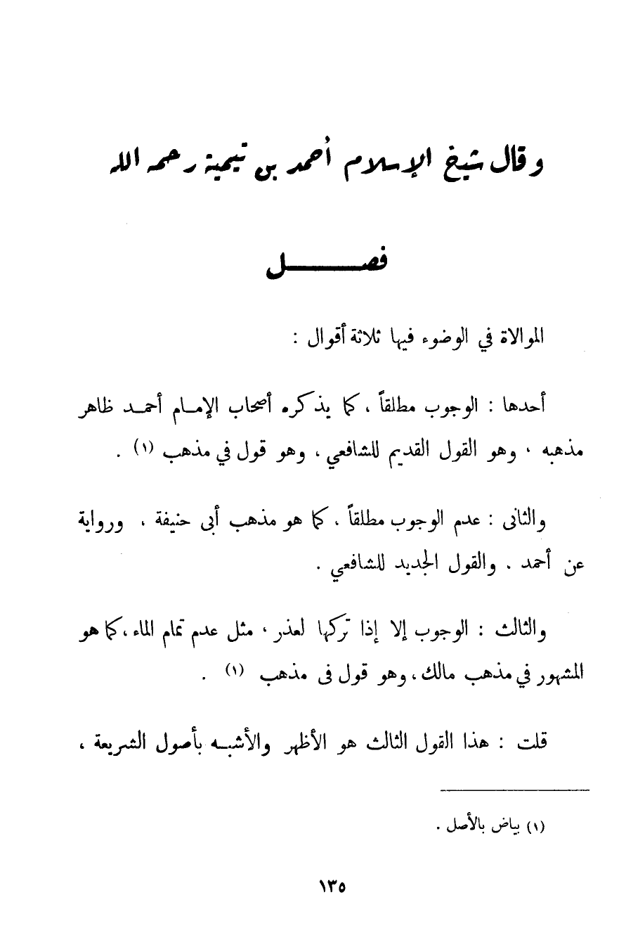 وَقَالَ شَيْخُ الْإِسْلَامِ أَحْمَد ابْنُ تَيْمِيَّة - رَحِمَهُ اللَّهُ -: