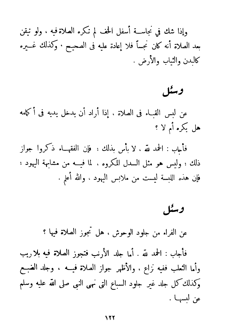 عَنْ الْفِرَاءِ مِنْ جُلُودِ الْوُحُوشِ هَلْ تَجُوزُ الصَّلَاةُ فِيهَا؟