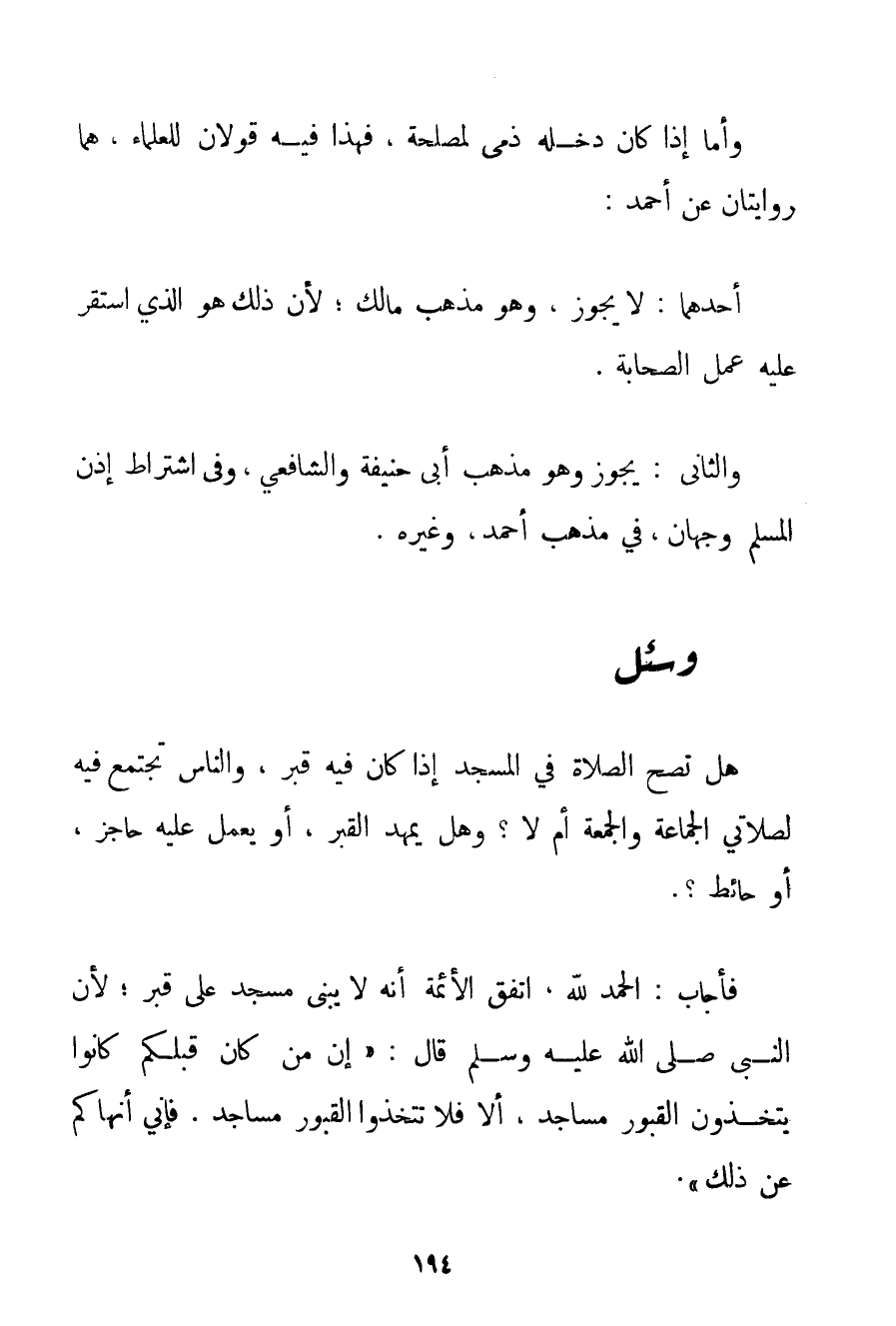 الْحَمْدُ لِلَّهِ، اتَّفَقَ الْأَئِمَّةُ أَنَّهُ لَا يُبْنَى مَسْجِدٌ عَلَى قَبْرٍ؛ لِأَنَّ النَّبِيَّ صَلَّى اللَّهُ عَلَيْهِ وَسَلَّمَ قَالَ: " {إنَّ مَنْ كَانَ قَبْلَكُمْ كَانُوا يَتَّخِذُونَ الْقُبُورَ مَسَاجِدَ أَلَا فَلَا تَتَّخِذُوا الْقُبُورَ مَسَاجِدَ. فَإِنِّي أَنْهَاكُمْ عَنْ ذَلِكَ} .