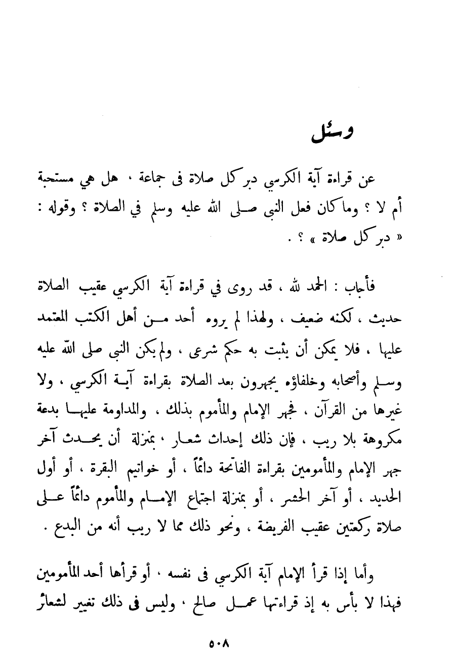 عَنْ قِرَاءَةِ آيَةِ الْكُرْسِيِّ دُبُرَ كُلِّ صَلَاةٍ فِي جَمَاعَةٍ هَلْ هِيَ مُسْتَحَبَّةٌ أَمْ لَا؟ وَمَا كَانَ فِعْلُ النَّبِيِّ صَلَّى اللَّهُ عَلَيْهِ وَسَلَّمَ فِي الصَّلَاةِ؟ وَقَوْلُهُ: " دُبُرَ كُلِّ صَلَاةٍ "؟ .
