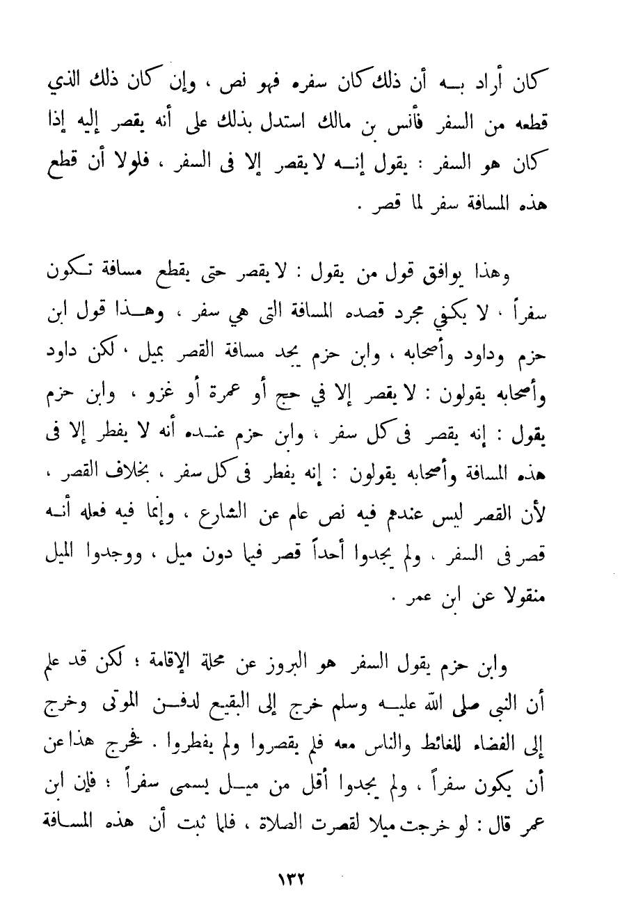 كَانَ أَرَادَ بِهِ أَنَّ ذَلِكَ كَانَ سَفَرَهُ فَهُوَ نَصٌّ وَإِنْ كَانَ ذَلِكَ الَّذِي قَطَعَهُ مِنْ السَّفَرِ فَأَنَسُ بْنُ مَالِكٍ اسْتَدَلَّ بِذَلِكَ عَلَى أَنَّهُ يَقْصُرُ إلَيْهِ إذَا كَانَ هُوَ السَّفَرَ: يَقُولُ إنَّهُ لَا يَقْصُرُ إلَّا فِي السَّفَرِ فَلَوْلَا أَنَّ قَطْعَ هَذِهِ الْمَسَافَةِ سَفَرٌ لَمَا قَصَرَ. وَهَذَا يُوَافِقُ قَوْلَ مَنْ يَقُولُ: لَا يَقْصُرُ حَتَّى يَقْطَعَ مَسَافَةً تَكُونُ سَفَرًا لَا يَكْفِي مُجَرَّدُ قَصْدِهِ الْمَسَافَةَ الَّتِي هِيَ سَفَرٌ وَهَذَا قَوْلُ ابْنِ حَزْمٍ ودَاوُد وَأَصْحَابِهِ وَابْنُ حَزْمٍ يَحُدُّ مَسَافَةَ الْقَصْرِ بِمِيلِ لَكِنَّ دَاوُد وَأَصْحَابَهُ يَقُولُونَ: لَا يَقْصُرُ إلَّا فِي حَجٍّ أَوْ عُمْرَةٍ أَوْ غَزْوٍ وَابْنُ حَزْمٍ يَقُولُ: إنَّهُ يَقْصُرُ فِي كُلِّ سَفَرٍ وَابْنُ حَزْمٍ عِنْدَهُ أَنَّهُ لَا يُفْطِرُ إلَّا فِي هَذِهِ الْمَسَافَةِ وَأَصْحَابُهُ يَقُولُونَ: إنَّهُ يُفْطِرُ فِي كُلِّ سَفَرٍ بِخِلَافِ الْقَصْرِ لِأَنَّ الْقَصْرَ لَيْسَ عِنْدَهُمْ فِيهِ نَصٌّ عَامٌّ عَنْ الشَّارِعِ وَإِنَّمَا فِيهِ فِعْلُهُ أَنَّهُ قَصَرَ فِي السَّفَرِ وَلَمْ يَجِدُوا أَحَدًا قَصَرَ فِيمَا دُونَ مِيلٍ وَوَجَدُوا الْمِيلَ مَنْقُولًا عَنْ ابْنِ عُمَرَ. وَابْنُ حَزْمٍ يَقُولُ السَّفَرُ هُوَ الْبُرُوزُ عَنْ مَحَلَّةِ الْإِقَامَةِ؛ لَكِنْ قَدْ عُلِمَ أَنَّ النَّبِيَّ صَلَّى اللَّهُ عَلَيْهِ وَسَلَّمَ خَرَجَ إلَى الْبَقِيعِ لِدَفْنِ الْمَوْتَى وَخَرَجَ إلَى الْفَضَاءِ لِلْغَائِطِ وَالنَّاسُ مَعَهُ فَلَمْ يَقْصُرُوا وَلَمْ يُفْطِرُوا. فَخَرَجَ هَذَا عَنْ أَنْ يَكُونَ سَفَرًا وَلَمْ يَجِدُوا أَقَلَّ مِنْ مِيلٍ يُسَمَّى سَفَرًا؛ فَإِنَّ ابْنَ عُمَرَ قَالَ: لَوْ خَرَجْت مِيلًا لَقَصَرْت الصَّلَاةَ فَلَمَّا ثَبَتَ أَنَّ هَذِهِ الْمَسَافَةَ