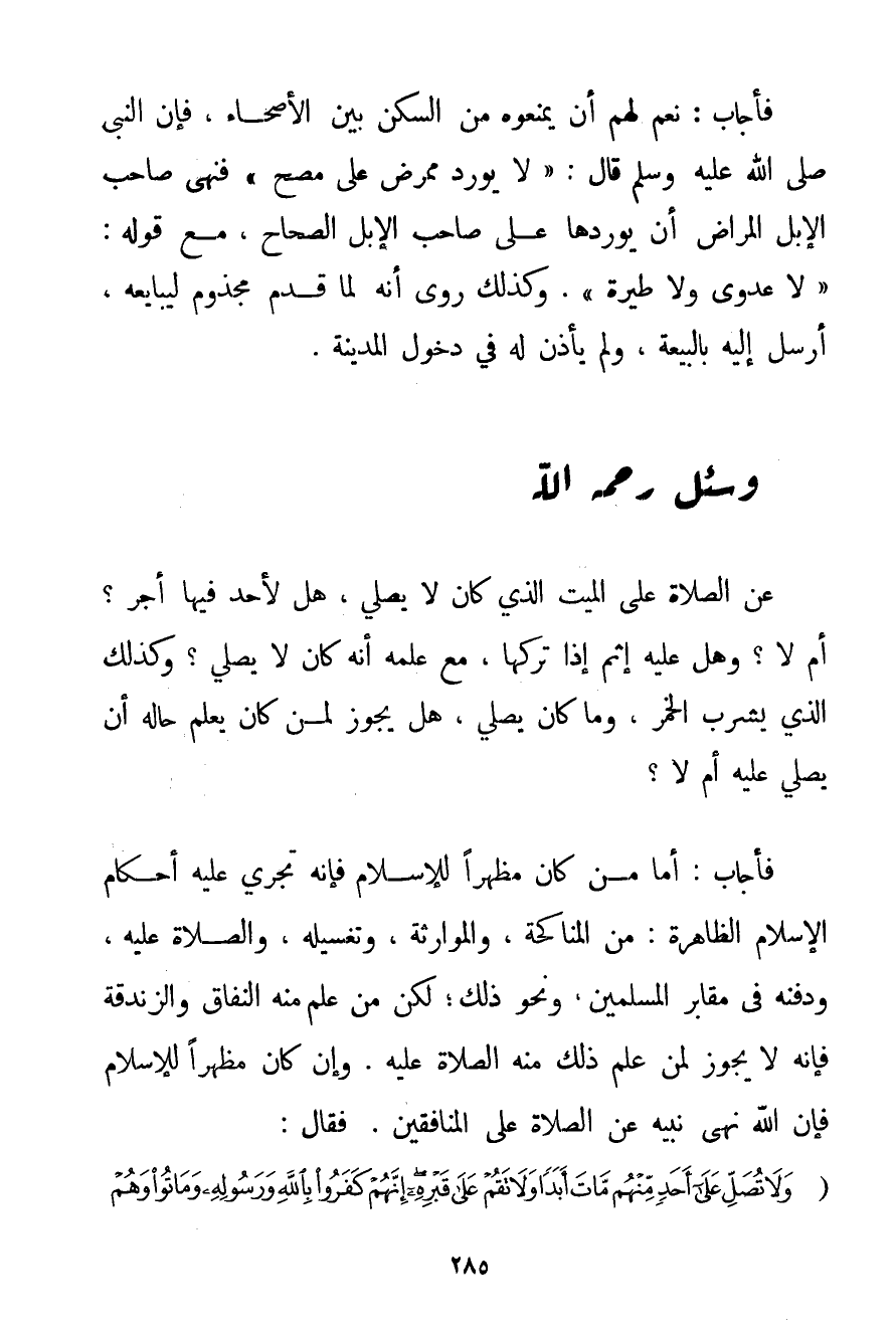 وَسُئِلَ - رَحِمَهُ اللَّهُ -: