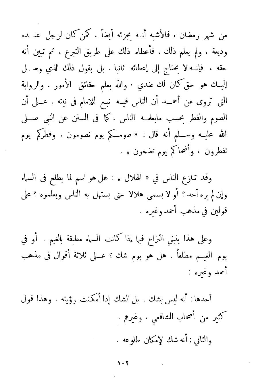 مِنْ شَهْرِ رَمَضَانَ فَالْأَشْبَهُ أَنَّهُ يُجْزِئُهُ أَيْضًا كَمَنْ كَانَ لِرَجُلٍ عِنْدَهُ وَدِيعَةٌ وَلَمْ يَعْلَمْ ذَلِكَ فَأَعْطَاهُ ذَلِكَ عَلَى طَرِيقِ التَّبَرُّعِ ثُمَّ تَبَيَّنَ أَنَّهُ حَقُّهُ فَإِنَّهُ لَا يَحْتَاجُ إلَى إعْطَائِهِ ثَانِيًا بَلْ يَقُولُ ذَلِكَ الَّذِي وَصَلَ إلَيْك هُوَ حَقٌّ كَانَ لَك عِنْدِي وَاَللَّهُ يَعْلَمُ حَقَائِقَ الْأُمُورِ. وَالرِّوَايَةُ الَّتِي تُرْوَى عَنْ أَحْمَد أَنَّ النَّاسَ فِيهِ تَبَعٌ لِلْإِمَامِ فِي نِيَّتِهِ عَلَى أَنَّ الصَّوْمَ وَالْفِطْرَ بِحَسَبِ مَا يَعْلَمُهُ النَّاسُ كَمَا فِي السُّنَنِ عَنْ النَّبِيِّ صَلَّى اللَّهُ عَلَيْهِ وَسَلَّمَ أَنَّهُ قَالَ: {صَوْمُكُمْ يَوْمَ تَصُومُونَ وَفِطْرُكُمْ يَوْمَ تُفْطِرُونَ وَأَضْحَاكُمْ يَوْمَ تُضَحُّونَ} .