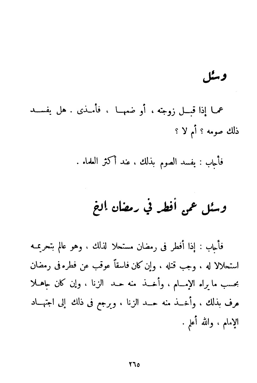 إذَا أَفْطَرَ فِي رَمَضَانَ مُسْتَحِلًّا لِذَلِكَ وَهُوَ عَالِمٌ بِتَحْرِيمِهِ اسْتِحْلَالًا لَهُ وَجَبَ قَتْلُهُ وَإِنْ كَانَ فَاسِقًا عُوقِبَ عَنْ فِطْرِهِ فِي رَمَضَانَ بِحَسَبِ مَا يَرَاهُ الْإِمَامُ وَأُخِذَ مِنْهُ حَدُّ الزِّنَا وَإِنْ كَانَ جَاهِلًا عُرِّفَ بِذَلِكَ وَأُخِذَ مِنْهُ حَدُّ الزِّنَا وَيُرْجَعُ فِي ذَلِكَ إلَى اجْتِهَادِ الْإِمَامِ وَاَللَّهُ أَعْلَمُ.