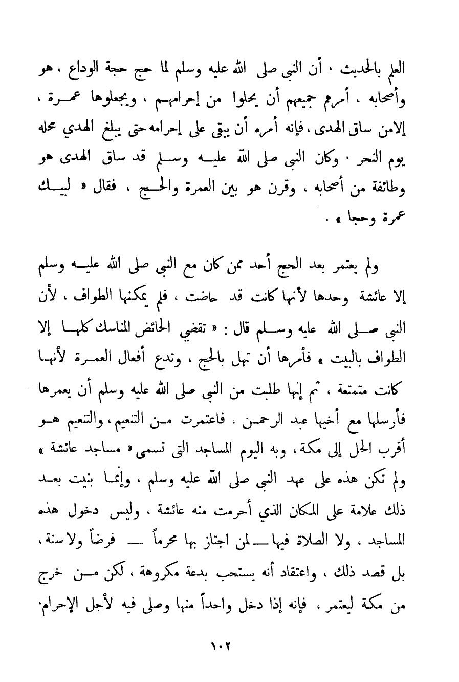 الْعِلْمِ بِالْحَدِيثِ أَنَّ النَّبِيَّ صَلَّى اللَّهُ عَلَيْهِ وَسَلَّمَ لَمَّا حَجَّ حَجَّةَ الْوَدَاعِ. هُوَ وَأَصْحَابُهُ أَمَرَهُمْ جَمِيعَهُمْ أَنْ يَحِلُّوا مِنْ إحْرَامِهِمْ وَيَجْعَلُوهَا عُمْرَةً إلَّا مَنْ سَاقَ الْهَدْيَ فَإِنَّهُ أَمَرَهُ أَنْ يَبْقَى عَلَى إحْرَامِهِ حَتَّى يَبْلُغَ الْهَدْيُ مَحِلَّهُ يَوْمَ النَّحْرِ {وكان النَّبِيُّ صَلَّى اللَّهُ عَلَيْهِ وَسَلَّمَ قَدْ سَاقَ الْهَدْيَ هُوَ وَطَائِفَةٌ مِنْ أَصْحَابِهِ وَقَرَنَ هُوَ بَيْنَ الْعُمْرَةِ وَالْحَجِّ فَقَالَ لَبَّيْكَ عُمْرَةً وَحَجًّا} -. وَلَمْ يَعْتَمِرْ بَعْدَ الْحَجِّ أَحَدٌ مِمَّنْ كَانَ مَعَ النَّبِيِّ صَلَّى اللَّهُ عَلَيْهِ وَسَلَّمَ إلَّا عَائِشَةَ وَحْدَهَا لِأَنَّهَا كَانَتْ قَدْ حَاضَتْ فَلَمْ يُمْكِنْهَا الطَّوَافُ لِأَنَّ النَّبِيَّ صَلَّى اللَّهُ عَلَيْهِ وَسَلَّمَ قَالَ: {تَقْضِي الْحَائِضُ الْمَنَاسِكَ كُلَّهَا إلَّا الطَّوَافَ بِالْبَيْتِ} فَأَمَرَهَا أَنْ تُهِلَّ بِالْحَجِّ وَتَدَعَ أَفْعَالَ الْعُمْرَةِ لِأَنَّهَا كَانَتْ مُتَمَتِّعَةً ثُمَّ إنَّهَا طَلَبَتْ مِنْ النَّبِيِّ صَلَّى اللَّهُ عَلَيْهِ وَسَلَّمَ أَنْ يُعْمِرَهَا فَأَرْسَلَهَا مَعَ أَخِيهَا عَبْدِ الرَّحْمَنِ فَاعْتَمَرَتْ مِنْ التَّنْعِيمِ وَالتَّنْعِيمُ هُوَ أَقْرَبُ الْحِلِّ إلَى مَكَّةَ وَبِهِ الْيَوْمَ الْمَسَاجِدُ الَّتِي تُسَمَّى " مَسَاجِدَ عَائِشَةَ " وَلَمْ تَكُنْ هَذِهِ عَلَى عَهْدِ النَّبِيِّ صَلَّى اللَّهُ عَلَيْهِ وَسَلَّمَ وَإِنَّمَا بُنِيَتْ بَعْدَ ذَلِكَ عَلَامَةً عَلَى الْمَكَانِ الَّذِي أَحْرَمَتْ مِنْهُ عَائِشَةُ؟ وَلَيْسَ دُخُولُ هَذِهِ الْمَسَاجِدِ وَلَا الصَّلَاةُ فِيهَا - لِمَنْ اجْتَازَ بِهَا مُحْرِمًا - لَا فَرْضًا وَلَا سُنَّةً بَلْ قَصْدُ ذَلِكَ وَاعْتِقَادُ أَنَّهُ يُسْتَحَبُّ بِدْعَةٌ مَكْرُوهَةٌ لَكِنْ مَنْ خَرَجَ مِنْ مَكَّةَ لِيَعْتَمِرَ فَإِنَّهُ إذَا دَخَلَ وَاحِدًا مِنْهَا وَصَلَّى فِيهِ لِأَجْلِ الْإِحْرَامِ