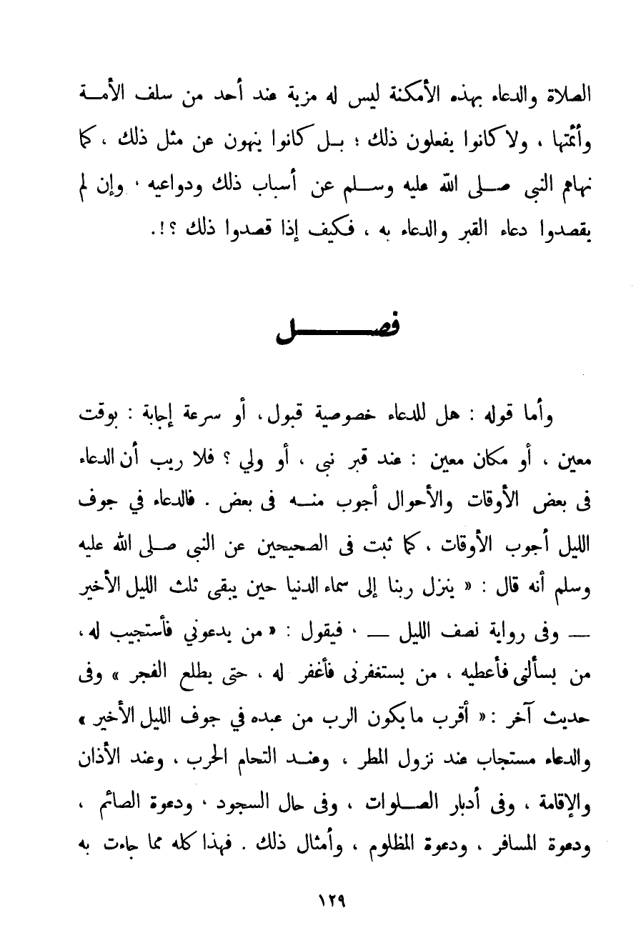 الصَّلَاةَ وَالدُّعَاءَ بِهَذِهِ الْأَمْكِنَةِ لَيْسَ مَزِيَّةً عِنْدَ أَحَدٍ مِنْ سَلَفِ الْأُمَّةِ وَأَئِمَّتِهَا وَلَا كَانُوا يَفْعَلُونَ ذَلِكَ؛ بَلْ كَانُوا يَنْهَوْنَ عَنْ مِثْلِ ذَلِكَ كَمَا نَهَاهُمْ النَّبِيُّ صَلَّى اللَّهُ عَلَيْهِ وَسَلَّمَ عَنْ أَسْبَابِ ذَلِكَ وَدَوَاعِيهِ وَإِنْ لَمْ يَقْصِدُوا دُعَاءَ الْقَبْرِ وَالدُّعَاءَ بِهِ فَكَيْفَ إذَا قَصَدُوا ذَلِكَ.