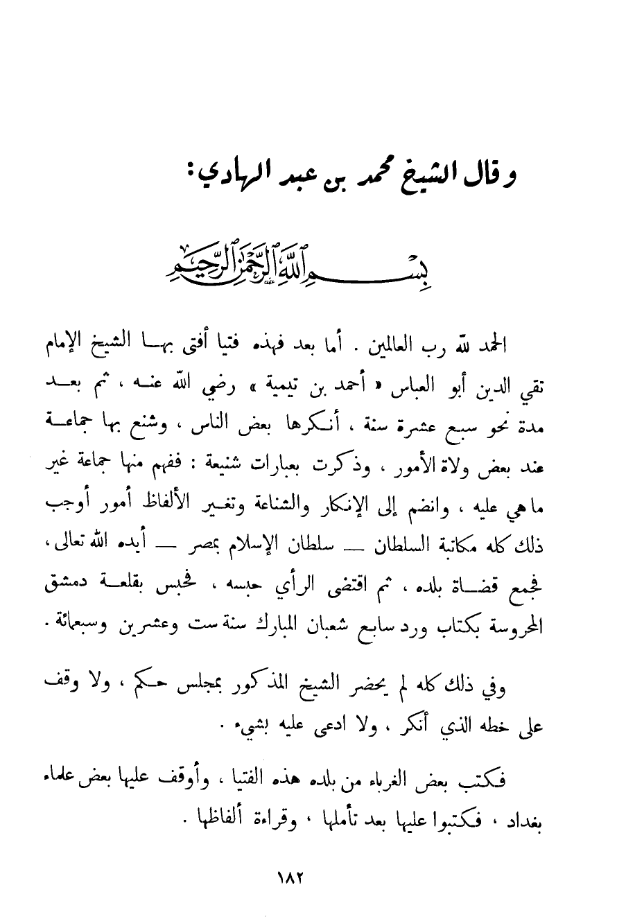 وَقَالَ الشَّيْخُ مُحَمَّدُ بْنُ عَبْدِ الْهَادِي: (*)