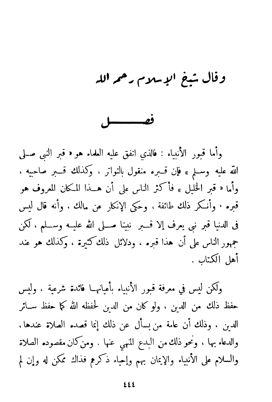 وَأَمَّا قُبُورُ الْأَنْبِيَاءِ: فَاَلَّذِي اتَّفَقَ عَلَيْهِ الْعُلَمَاءُ هُوَ " قَبْرُ النَّبِيِّ صَلَّى اللَّهُ عَلَيْهِ وَسَلَّمَ " فَإِنَّ قَبْرَهُ مَنْقُولٌ بِالتَّوَاتُرِ وَكَذَلِكَ فِي صَاحِبَيْهِ وَأَمَّا " قَبْرُ الْخَلِيلِ " فَأَكْثَرُ النَّاسِ عَلَى أَنَّ هَذَا الْمَكَانَ الْمَعْرُوفَ هُوَ قَبْرُهُ وَأَنْكَرَ ذَلِكَ طَائِفَةٌ وَحُكِيَ الْإِنْكَارُ عَنْ مَالِكٍ وَأَنَّهُ قَالَ لَيْسَ فِي الدُّنْيَا قَبْرُ نَبِيٍّ يُعْرَفُ إلَّا قَبْرُ نَبِيِّنَا صَلَّى اللَّهُ عَلَيْهِ وَسَلَّمَ لَكِنَّ جُمْهُورَ النَّاسِ عَلَى أَنَّ هَذَا قَبْرُهُ وَدَلَائِلُ ذَلِكَ كَثِيرَةٌ وَكَذَلِكَ هُوَ عِنْدَ أَهْلِ الْكِتَابِ. وَلَكِنْ لَيْسَ فِي مَعْرِفَةِ قُبُورِ الْأَنْبِيَاءِ بِأَعْيَانِهَا فَائِدَةٌ شَرْعِيَّةٌ وَلَيْسَ حِفْظُ ذَلِكَ مِنْ الدِّينِ وَلَوْ كَانَ مِنْ الدِّينِ لَحَفِظَهُ اللَّهُ كَمَا حَفِظَ سَائِرَ الدِّينِ وَذَلِكَ أَنَّ عَامَّةَ مَنْ يَسْأَلُ عَنْ ذَلِكَ إنَّمَا قَصْدُهُ الصَّلَاةُ عِنْدَهَا وَالدُّعَاءُ بِهَا وَنَحْوُ ذَلِكَ مِنْ الْبِدَعِ الْمَنْهِيِّ عَنْهَا. وَمَنْ كَانَ مَقْصُودُهُ الصَّلَاةَ وَالسَّلَامَ عَلَى الْأَنْبِيَاءِ وَالْإِيمَانَ بِهِمْ وَإِحْيَاءَ ذِكْرِهِمْ فَذَاكَ مُمْكِنٌ لَهُ وَإِنْ لَمْ