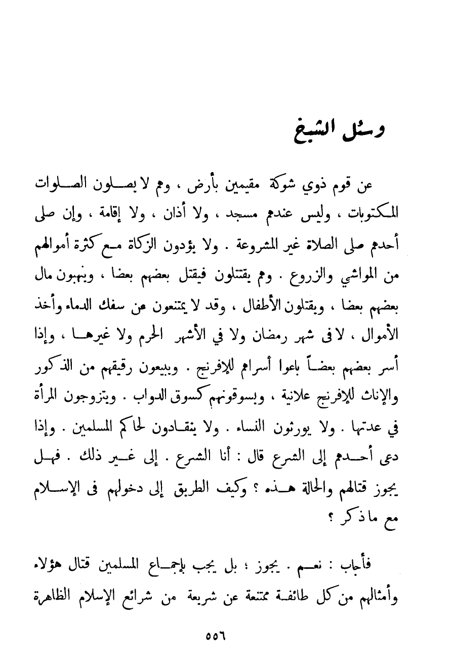 نَعَمْ، يَجُوزُ؛ بَلْ يَجِبُ بِإِجْمَاعِ الْمُسْلِمِينَ قِتَالُ هَؤُلَاءِ وَأَمْثَالِهِمْ مِنْ كُلِّ طَائِفَةٍ مُمْتَنِعَةٍ عَنْ شَرِيعَةٍ مِنْ شَرَائِعِ الْإِسْلَامِ الظَّاهِرَةِ