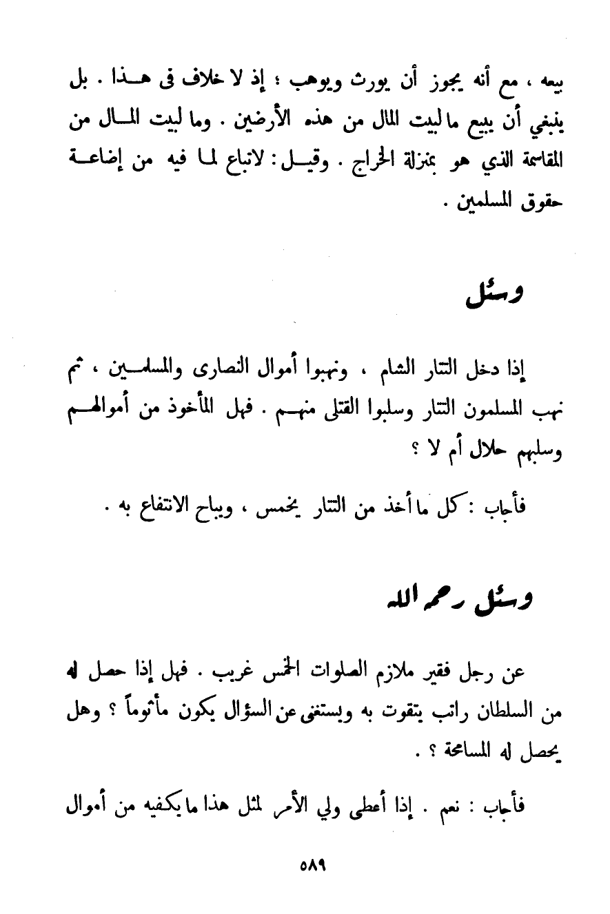إذَا دَخَلَ التَّتَارُ الشَّامَ وَنَهَبُوا أَمْوَالَ النَّصَارَى وَالْمُسْلِمِينَ ثُمَّ نَهَبَ الْمُسْلِمُونَ التَّتَارَ وَسَلَبُوا الْقَتْلَى مِنْهُمْ. فَهَلْ الْمَأْخُوذُ مِنْ أَمْوَالِهِمْ وَسَلَبِهِمْ حَلَالٌ أَمْ لَا؟