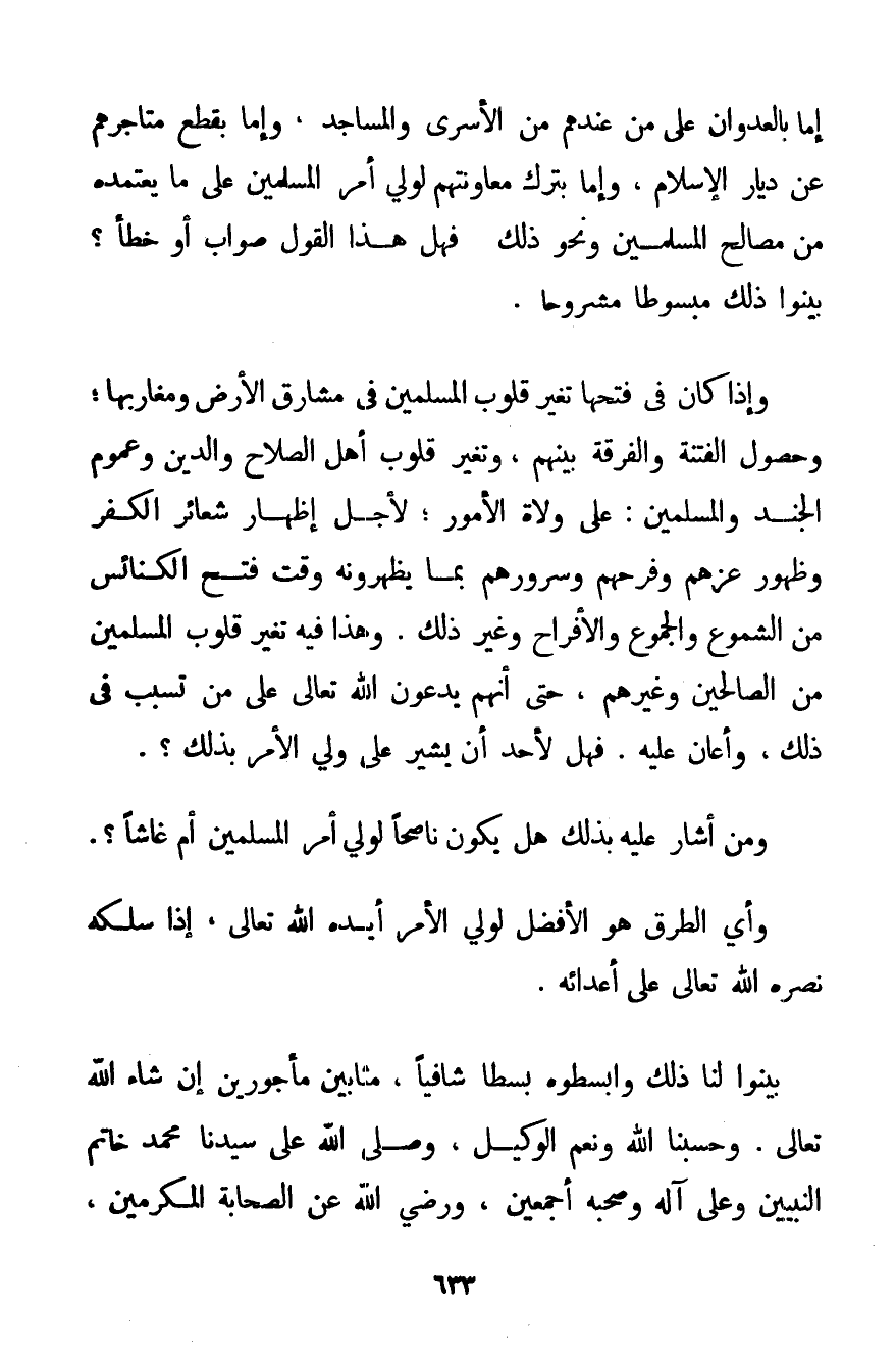 إمَّا بِالْعُدْوَانِ عَلَى مَنْ عِنْدَهُمْ مِنْ الْأَسْرَى وَالْمَسَاجِدِ وَإِمَّا بِقَطْعِ مَتَاجِرِهِمْ عَنْ دِيَارِ الْإِسْلَامِ وَإِمَّا بِتَرْكِ مُعَاوَنَتِهِمْ لِوَلِيِّ أَمْرِ الْمُسْلِمِينَ عَلَى مَا يَعْتَمِدُهُ مِنْ مَصَالِحِ الْمُسْلِمِينَ وَنَحْوِ ذَلِكَ فَهَلْ هَذَا الْقَوْلُ صَوَابٌ أَوْ خَطَأٌ؟ بَيِّنُوا ذَلِكَ مَبْسُوطًا مَشْرُوحًا. وَإِذَا كَانَ فِي فَتْحِهَا تَغَيُّرُ قُلُوبِ الْمُسْلِمِينَ فِي مَشَارِقِ الْأَرْضِ وَمَغَارِبِهَا؛ وَحُصُولُ الْفِتْنَةِ وَالْفُرْقَةِ بَيْنَهُمْ وَتَغَيُّرُ قُلُوبِ أَهْلِ الصَّلَاحِ وَالدِّينِ وَعُمُومِ الْجُنْدِ وَالْمُسْلِمِينَ: عَلَى وُلَاةِ الْأُمُورِ؛ لِأَجْلِ إظْهَارِ شَعَائِرِ الْكُفْرِ وَظُهُورِ عِزِّهِمْ وَفَرَحِهِمْ وَسُرُورِهِمْ بِمَا يُظْهِرُونَهُ وَقْتَ فَتْحِ الْكَنَائِسِ مِنْ الشُّمُوعِ وَالْجُمُوعِ وَالْأَفْرَاحِ وَغَيْرِ ذَلِكَ. وَهَذَا فِيهِ تَغَيُّرُ قُلُوبِ الْمُسْلِمِينَ مِنْ الصَّالِحِينَ وَغَيْرِهِمْ حَتَّى إنَّهُمْ يَدْعُونَ اللَّهَ تَعَالَى عَلَى مَنْ تَسَبَّبَ فِي ذَلِكَ وَأَعَانَ عَلَيْهِ. فَهَلْ لِأَحَدِ أَنْ يُشِيرَ عَلَى وَلِيِّ الْأَمْرِ بِذَلِكَ؟ . وَمَنْ أَشَارَ عَلَيْهِ بِذَلِكَ هَلْ يَكُونُ نَاصِحًا لِوَلِيِّ أَمْرِ الْمُسْلِمِينَ أَمْ غَاشًّا؟ . وَأَيُّ الطُّرُقِ هُوَ الْأَفْضَلُ لِوَلِيِّ الْأَمْرِ أَيَّدَهُ اللَّهُ تَعَالَى إذَا سَلَكَهُ نَصَرَهُ اللَّهُ تَعَالَى عَلَى أَعْدَائِهِ. بَيِّنُوا لَنَا ذَلِكَ وَأَبْسِطُوهُ بَسْطًا شَافِيًا مُثَابِينَ مَأْجُورِينَ إنْ شَاءَ اللَّهُ تَعَالَى. وَحَسْبُنَا اللَّهُ وَنِعْمَ الْوَكِيلُ وَصَلَّى اللَّهُ عَلَى سَيِّدِنَا مُحَمَّدٍ خَاتَمِ النَّبِيِّينَ وَعَلَى آلِهِ وَصَحْبِهِ أَجْمَعِينَ وَرَضِيَ اللَّهُ عَنْ الصَّحَابَةِ الْمُكَرَّمِينَ