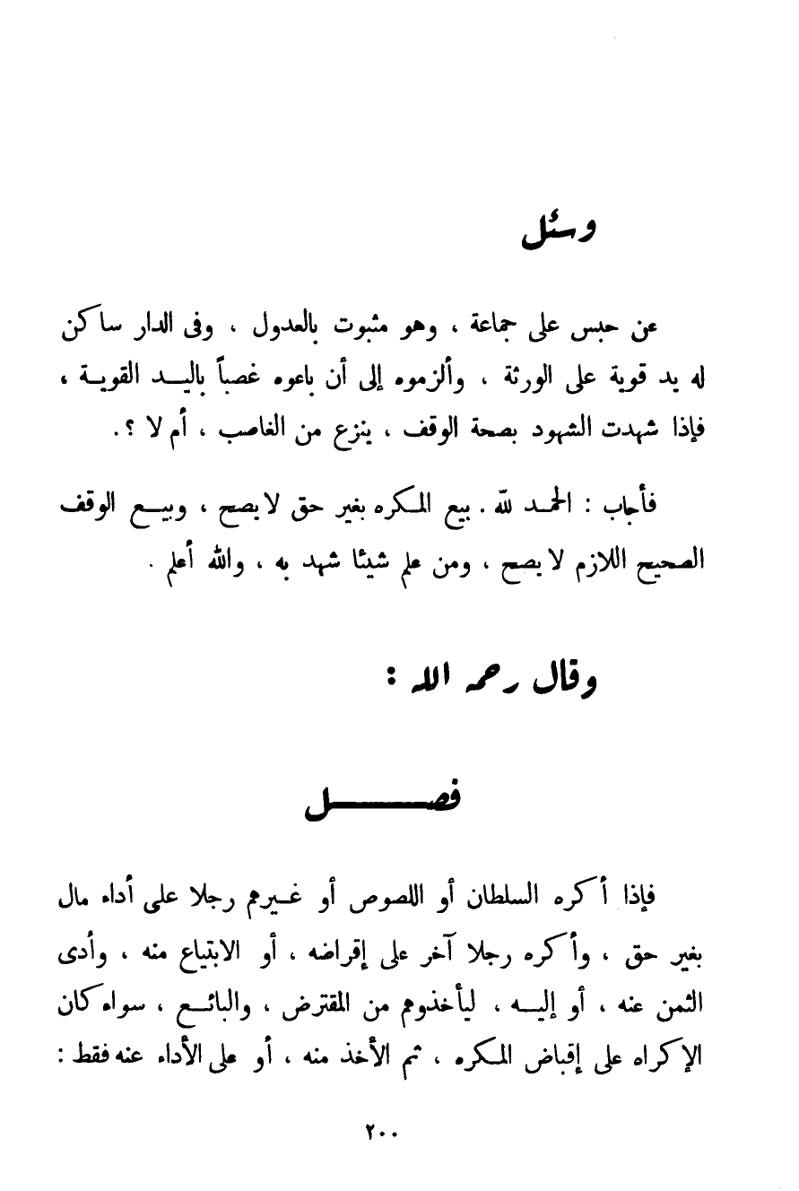 الْحَمْدُ لِلَّهِ، بَيْعُ الْمُكْرَهِ بِغَيْرِ حَقٍّ لَا يَصِحُّ وَبَيْعُ الْوَقْفِ الصَّحِيحِ اللَّازِمِ لَا يَصِحُّ وَمَنْ عَلِمَ شَيْئًا شَهِدَ بِهِ وَاَللَّهُ أَعْلَمُ.