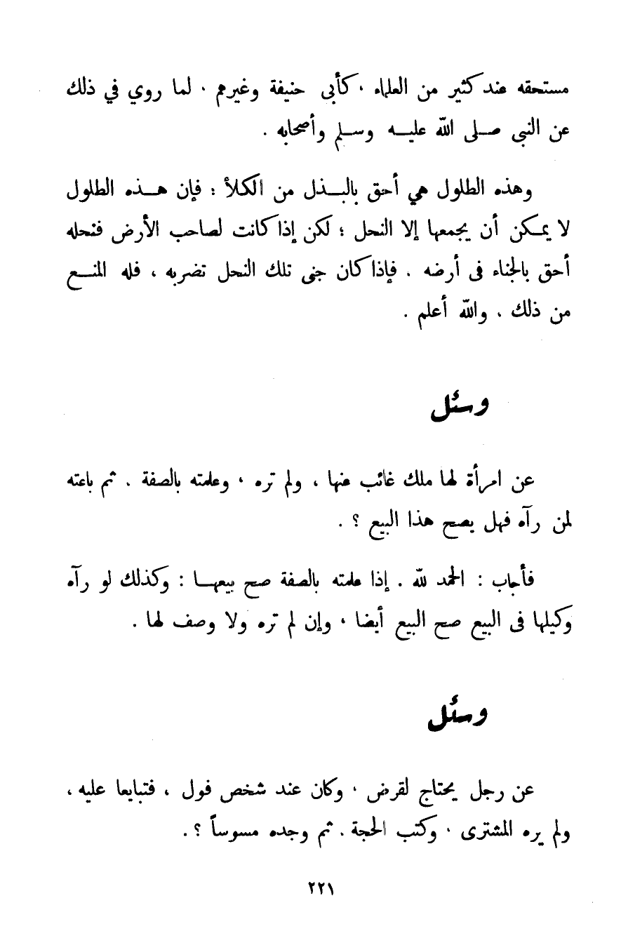 مُسْتَحِقِّهِ عِنْدَ كَثِيرٍ مِنْ الْعُلَمَاءِ كَأَبِي حَنِيفَةَ وَغَيْرِهِمْ لِمَا رُوِيَ فِي ذَلِكَ عَنْ النَّبِيِّ صَلَّى اللَّهُ عَلَيْهِ وَسَلَّمَ وَأَصْحَابِهِ. وَهَذِهِ الطُّلُولُ يَجْمَعُهَا أَحَقُّ بِالْبَذْلِ مِنْ الْكَلَأِ؛ فَإِنَّ هَذِهِ الطُّلُولَ لَا يُمْكِنُ أَنْ يَجْمَعَهَا إلَّا النَّحْلُ؛ لَكِنْ إذَا كَانَتْ لِصَاحِبِ الْأَرْضِ فَنَحْلُهُ أَحَقُّ بِالْجِنَاءِ فِي أَرْضِهِ. فَإِذَا كَانَ جَنَى تِلْكَ النَّحْلَ تَضْرِبُهُ فَلَهُ الْمَنْعُ مِنْ ذَلِكَ وَاَللَّهُ أَعْلَمُ.