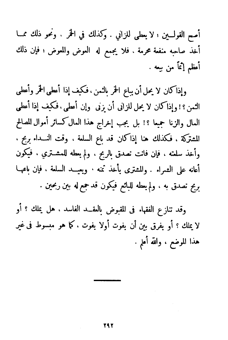 أَصَحِّ الْقَوْلَيْنِ؛ لَا يُعْطَى لِلزَّانِي. وَكَذَلِكَ فِي الْخَمْرِ وَنَحْوِ ذَلِكَ مِمَّا أَخَذَ صَاحِبُهُ مَنْفَعَةً مُحَرَّمَةً فَلَا يَجْمَعُ لَهُ الْعِوَضَ وَالْمُعَوَّضَ؛ فَإِنَّ ذَلِكَ أَعْظَمُ إثْمًا مِنْ بَيْعِهِ. وَإِذَا كَانَ لَا يَحِلُّ أَنْ يُبَاعَ الْخَمْرُ بِالثَّمَنِ فَكَيْفَ إذَا أَعْطَى الْخَمْرَ وَأَعْطَى الثَّمَنَ وَإِذَا كَانَ لَا يَحِلُّ لِلزَّانِي أَنْ يَزْنِيَ وَإِنْ أَعْطَى فَكَيْفَ إذَا أَعْطَى الْمَالَ وَالزِّنَا جَمِيعًا بَلْ يَجِبُ إخْرَاجُ هَذَا الْمَالِ كَسَائِرِ أَمْوَالِ الْمَصَالِحِ الْمُشْتَرَكَةِ فَكَذَلِكَ هُنَا إذَا كَانَ قَدْ بَاعَ السِّلْعَةَ وَقْتَ النِّدَاءِ بِرِبْحِ وَأَخَذَ سِلْعَتَهُ فَإِنْ فَاتَتْ تَصَدَّقَ بِالرِّبْحِ وَلَمْ يُعْطِهِ لِلْمُشْتَرِي فَيَكُونُ أَعَانَهُ عَلَى الشِّرَاءِ. وَالْمُشْتَرِي يَأْخُذُ ثَمَنَهُ وَيُعِيدُ السِّلْعَةَ فَإِنْ بَاعَهَا بِرِبْحٍ تَصَدَّقَ بِهِ وَلَمْ يُعْطِهِ لِلْبَائِعِ فَيَكُونُ قَدْ جَمَعَ لَهُ بَيْنَ رِبْحَيْنِ. وَقَدْ تَنَازَعَ الْفُقَهَاءُ فِي الْمَقْبُوضِ بِالْعَقْدِ الْفَاسِدِ هَلْ يَمْلِكُ؟ أَوْ لَا يَمْلِكُ؟ أَوْ يُفَرِّقُ بَيْنَ أَنْ يَفُوتَ أَوْ لَا يَفُوتَ كَمَا هُوَ مَبْسُوطٌ فِي غَيْرِ هَذَا الْمَوْضِعِ وَاَللَّهُ أَعْلَمُ.