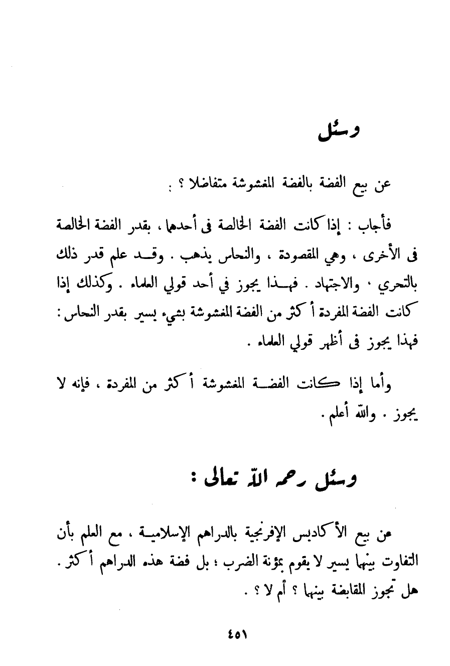 عَنْ بَيْعِ الْفِضَّةِ بِالْفِضَّةِ الْمَغْشُوشَةِ مُتَفَاضِلًا؟ .