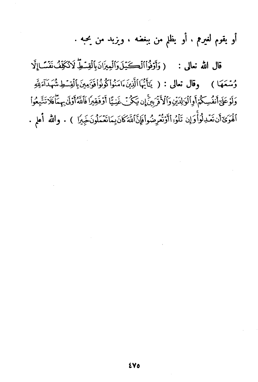 أَوْ يُقَوِّمُ لِغَيْرِهِمْ أَوْ يَظْلِمُ مَنْ يُبْغِضُهُ وَيَزِيدُ مَنْ يُحِبُّهُ. قَالَ اللَّهُ تَعَالَى: {وَأَوْفُوا الْكَيْلَ وَالْمِيزَانَ بِالْقِسْطِ لَا نُكَلِّفُ نَفْسًا إلَّا وُسْعَهَا} وَقَالَ تَعَالَى: {يَا أَيُّهَا الَّذِينَ آمَنُوا كُونُوا قَوَّامِينَ بِالْقِسْطِ شُهَدَاءَ لِلَّهِ وَلَوْ عَلَى أَنْفُسِكُمْ أَوِ الْوَالِدَيْنِ وَالْأَقْرَبِينَ إنْ يَكُنْ غَنِيًّا أَوْ فَقِيرًا فَاللَّهُ أَوْلَى بِهِمَا فَلَا تَتَّبِعُوا الْهَوَى أَنْ تَعْدِلُوا وَإِنْ تَلْوُوا أَوْ تُعْرِضُوا فَإِنَّ اللَّهَ كَانَ بِمَا تَعْمَلُونَ خَبِيرًا} . وَاَللَّهُ أَعْلَمُ.