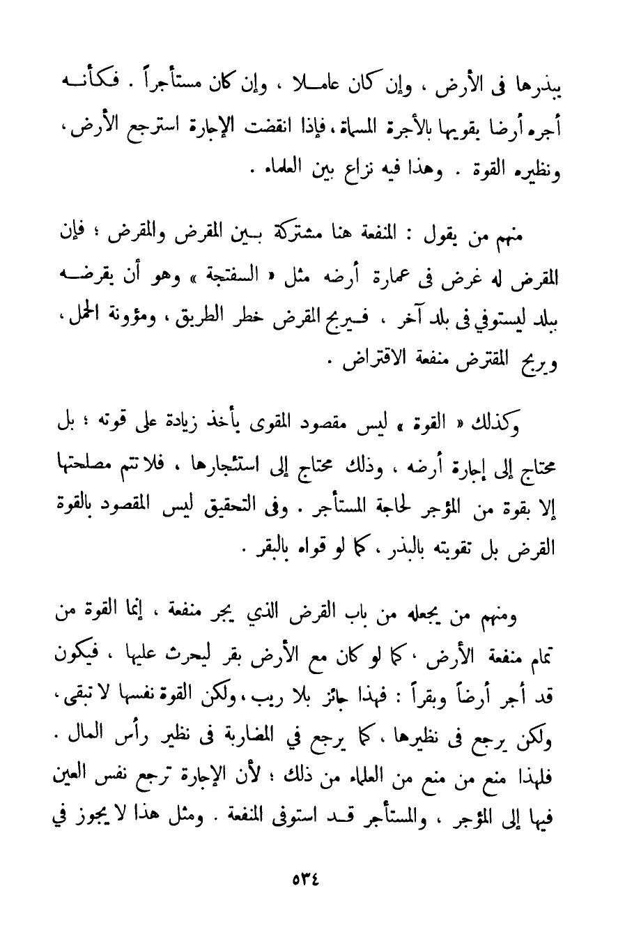 يَبْذُرَهَا فِي الْأَرْضِ وَإِنْ كَانَ عَامِلًا وَإِنْ كَانَ مُسْتَأْجِرًا. فَكَأَنَّهُ أَجَّرَهُ أَرْضًا يُقَوِّيهَا بِالْأُجْرَةِ الْمُسَمَّاةِ فَإِذَا انْقَضَتْ الْإِجَارَةُ اسْتَرْجَعَ الْأَرْضَ وَنَظِيرُهُ الْقُوَّةُ. وَهَذَا فِيهِ نِزَاعٌ بَيْنَ الْعُلَمَاءِ. مِنْهُمْ مَنْ يَقُولُ: الْمَنْفَعَةُ هُنَا مُشْتَرَكَةٌ بَيْنَ الْمُقْرِضِ وَالْمُقْرَضِ: فَإِنَّ الْمُقْرِضَ لَهُ غَرَضٌ فِي عِمَارَةِ أَرْضِهِ مِثْلَ " السَّفْتَجَةِ " وَهُوَ أَنْ يُقْرِضَهُ بِبَلَدٍ لِيَسْتَوْفِيَ فِي بَلَدٍ آخَرَ فَيَرْبَحُ الْمُقْرِضُ خَطَرَ الطَّرِيقِ وَمَئُونَةَ الْحَمْلِ وَيَرْبَحُ الْمُقْرَضُ مَنْفَعَةَ الِاقْتِرَاضِ. وَكَذَلِكَ " الْقُوَّةُ " لَيْسَ مَقْصُودُ الْمُقَوِّي يَأْخُذُ زِيَادَةً عَلَى قُوَّتِهِ؛ بَلْ مُحْتَاجٌ إلَى إجَارَةِ أَرْضِهِ وَذَلِكَ مُحْتَاجٌ إلَى اسْتِئْجَارِهَا فَلَا تَتِمُّ مَصْلَحَتُهَا إلَّا بِقُوَّةٍ مِنْ الْمُؤَجِّرِ لِحَاجَةِ الْمُسْتَأْجِرِ، وَفِي التَّحْقِيقِ لَيْسَ الْمَقْصُودُ بِالْقُوَّةِ الْقَرْضَ بَلْ تَقْوِيَتُهُ بِالْبَذْرِ كَمَا لَوْ قَوَّاهُ بِالْبَقَرِ. وَمِنْهُمْ مَنْ يَجْعَلُهُ مِنْ بَابِ الْقَرْضِ الَّذِي يَجُرُّ مَنْفَعَةً إنَّمَا الْقُوَّةُ مِنْ تَمَامِ مَنْفَعَةِ الْأَرْضِ كَمَا لَوْ كَانَ مَعَ الْأَرْضِ بَقَرٌ لِيَحْرُثَ عَلَيْهَا فَيَكُونُ قَدْ أَجَّرَ أَرْضًا وَبَقَرًا: فَهَذَا جَائِزٌ بِلَا رَيْبٍ وَلَكِنَّ الْقُوَّةَ نَفْسَهَا لَا تَبْقَى وَلَكِنْ يَرْجِعُ فِي نَظِيرِهَا كَمَا يَرْجِعُ فِي الْمُضَارَبَةِ فِي نَظِيرِ رَأْسِ الْمَالِ. فَلِهَذَا مَنَعَ مَنْ مَنَعَ مِنْ الْعُلَمَاءِ مِنْ ذَلِكَ؛ لِأَنَّ الْإِجَارَةَ تُرْجِعُ نَفْسَ الْعَيْنِ فِيهَا إلَى الْمُؤَجِّرِ وَالْمُسْتَأْجِرُ قَدْ اسْتَوْفَى الْمَنْفَعَةَ. وَمِثْلُ هَذَا لَا يَجُوزُ فِي