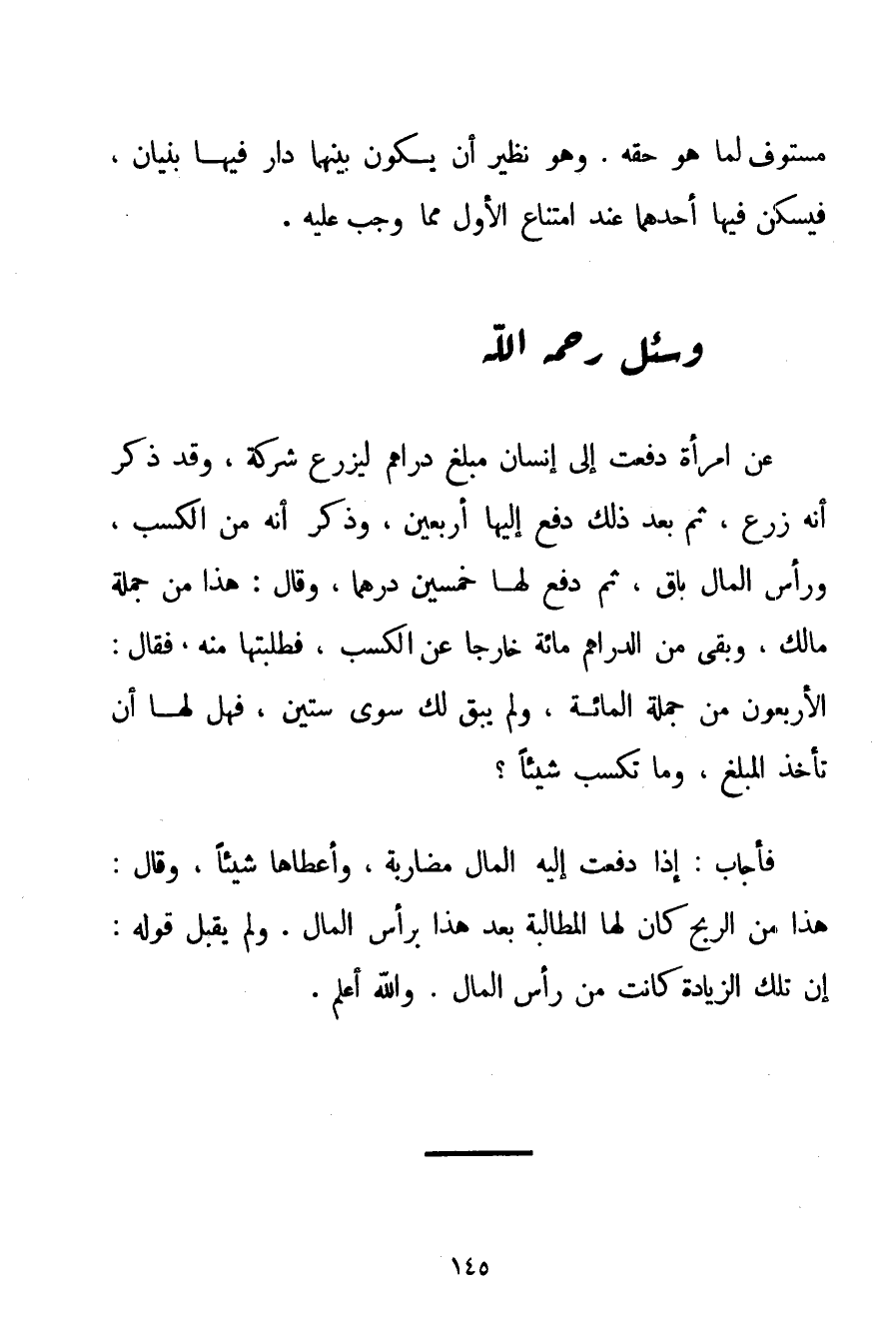 عَنْ امْرَأَةٍ دَفَعَتْ إلَى إنْسَانٍ مَبْلَغَ دَرَاهِمَ لِيَزْرَعَ شَرِكَةً وَقَدْ ذَكَرَ أَنَّهُ زَرَعَ ثُمَّ بَعْدَ ذَلِكَ دَفَعَ إلَيْهَا أَرْبَعِينَ وَذَكَرَ أَنَّهُ مِنْ الْكَسْبِ وَرَأْسُ الْمَالِ بَاقٍ ثُمَّ دَفَعَ لَهَا خَمْسِينَ دِرْهَمًا وَقَالَ: هَذَا مِنْ جُمْلَةِ مَالِك وَبَقِيَ مِنْ الدَّرَاهِمِ مِائَةٌ خَارِجًا عَنْ الْكَسْبِ فَطَلَبَتْهَا مِنْهُ فَقَالَ: الْأَرْبَعُونَ مِنْ جُمْلَةِ الْمِائَةِ وَلَمْ يَبْقَ لَك سِوَى سِتِّينَ فَهَلْ لَهَا أَنْ تَأْخُذَ الْمَبْلَغَ وَمَا تَكْسِبُ شَيْئًا؟