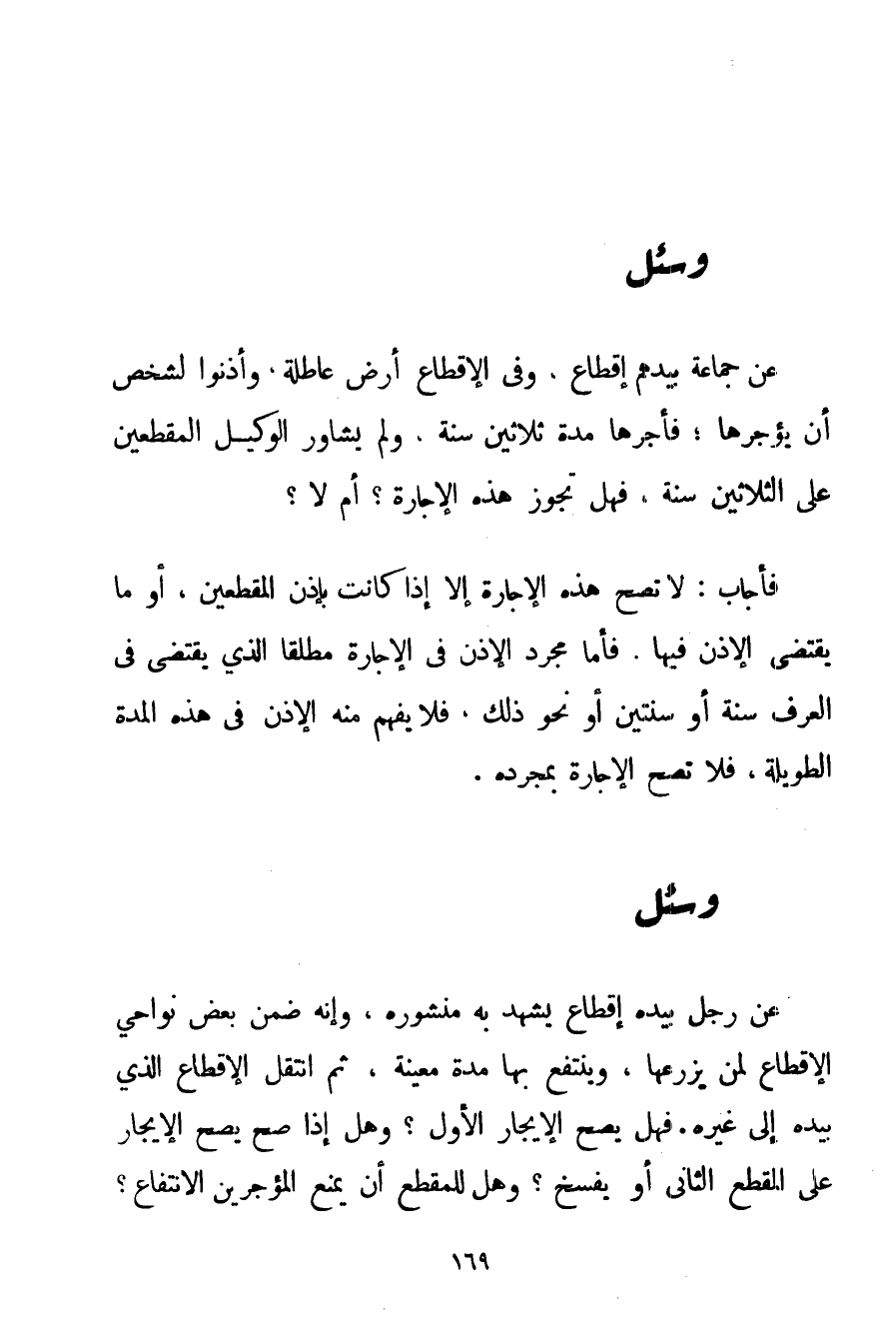 عَنْ جَمَاعَةٍ بِيَدِهِمْ إقْطَاعٌ وَفِي الْإِقْطَاعِ أَرْضٌ عَاطِلَةٌ وَأَذِنُوا لِشَخْصِ أَنْ يُؤَجِّرَهَا؛ فَأَجَّرَهَا مُدَّةَ ثَلَاثِينَ سَنَةً وَلَمْ يُشَاوِرْ الْوَكِيلُ الْمُقْطَعِينَ عَلَى الثَّلَاثِينَ سَنَةٍ فَهَلْ تَجُوزُ هَذِهِ الْإِجَارَةُ؟ أَمْ لَا؟