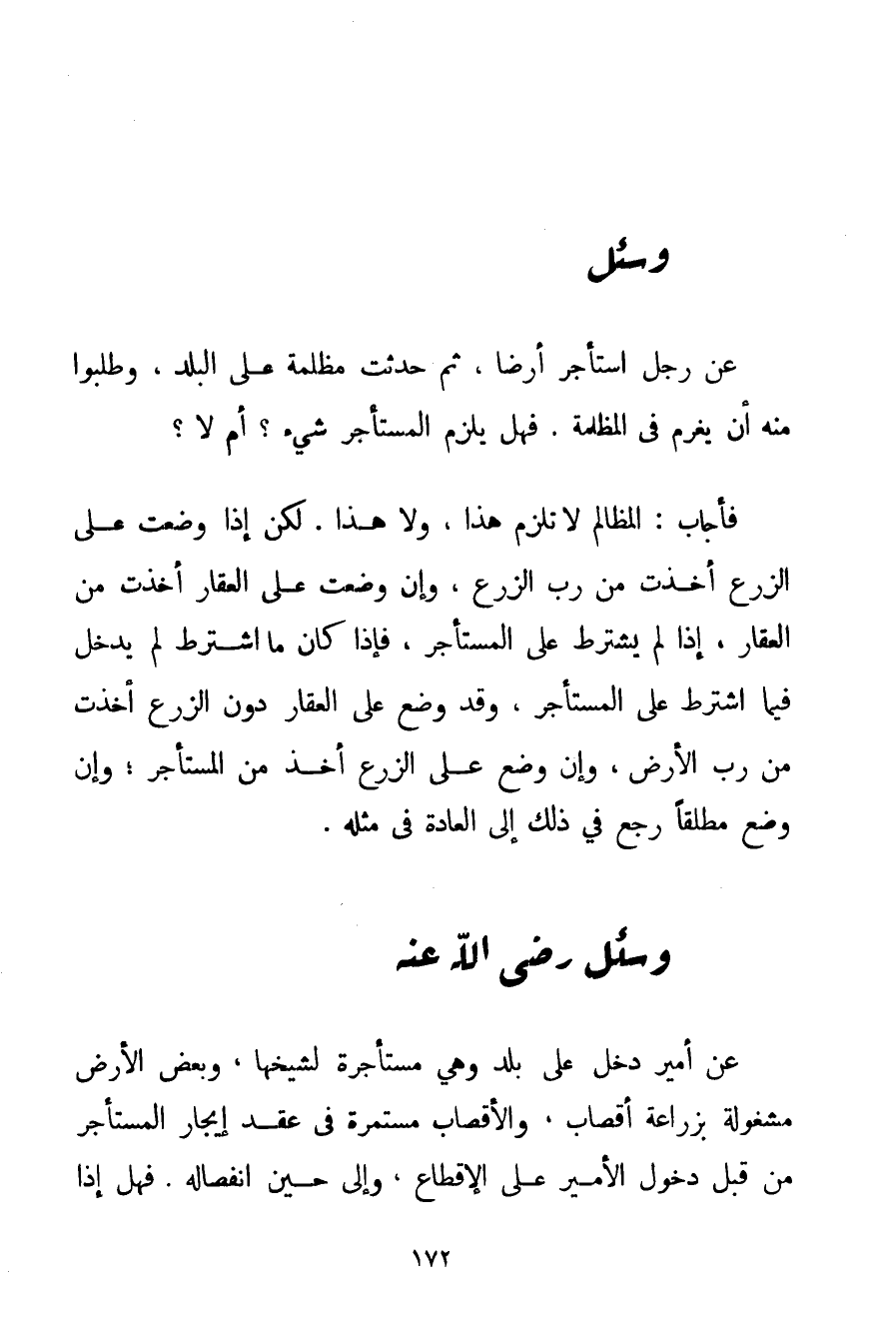 عَنْ رَجُلٍ اسْتَأْجَرَ أَرْضًا ثُمَّ حَدَثَتْ مَظْلِمَةٌ عَلَى الْبَلَدِ وَطَلَبُوا مِنْهُ أَنْ يَغْرَمَ فِي الْمَظْلِمَةِ. فَهَلْ يَلْزَمُ الْمُسْتَأْجِرَ شَيْءٌ؟ أَمْ لَا؟