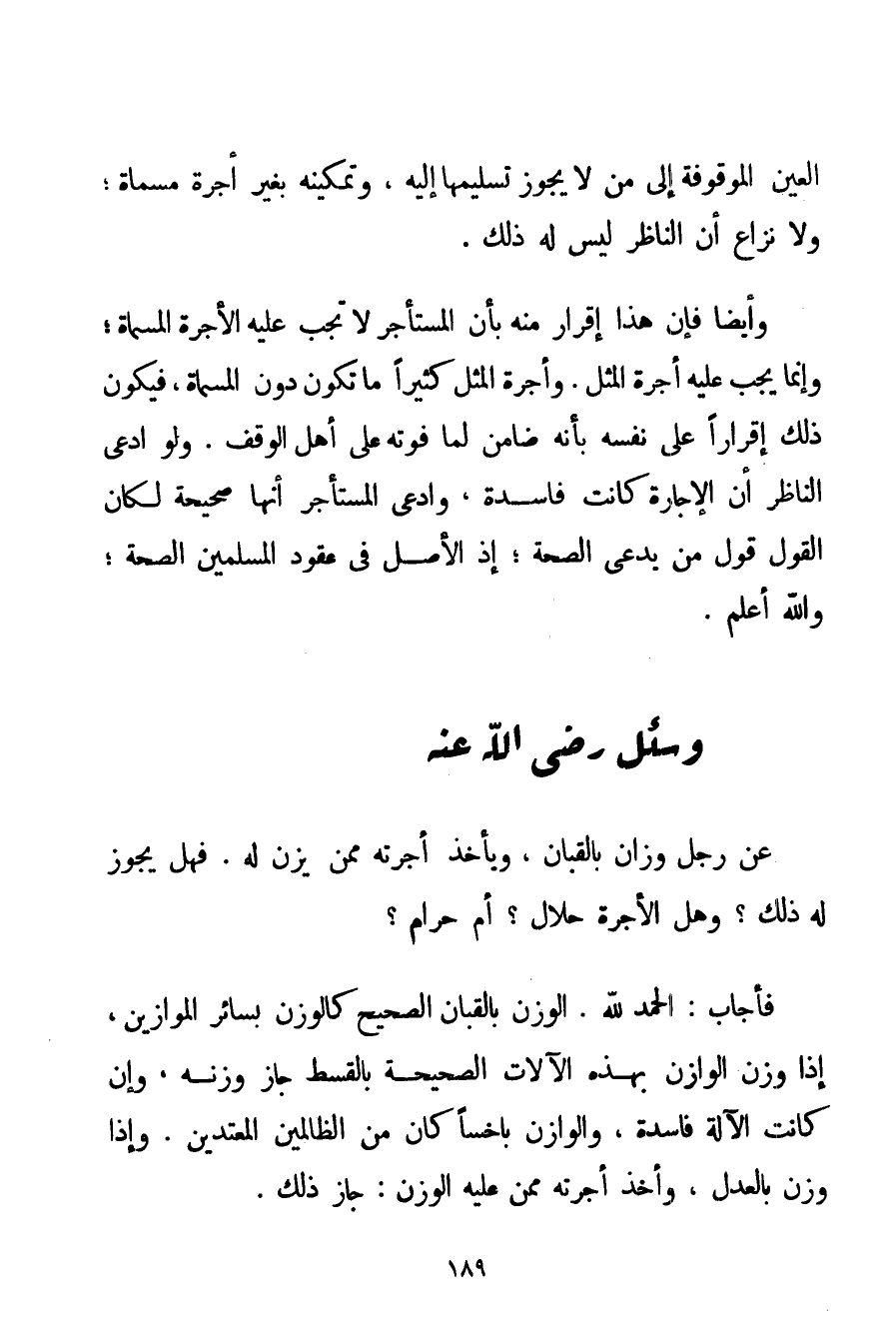 عَنْ رَجُلٍ وَزَّانٍ بِالْقَبَّانِ وَيَأْخُذُ أُجْرَتَهُ مِمَّنْ يَزِنُ لَهُ. فَهَلْ يَجُوزُ لَهُ ذَلِكَ؟ وَهَلْ الْأُجْرَةُ حَلَالٌ؟ أَمْ حَرَامٌ؟