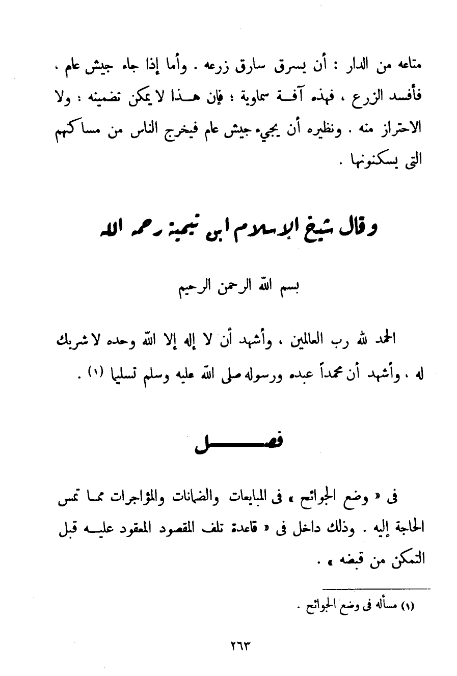 وَقَالَ شَيْخُ الْإِسْلَامِ ابن تَيْمِيَّة - رَحِمَهُ اللَّهُ -: