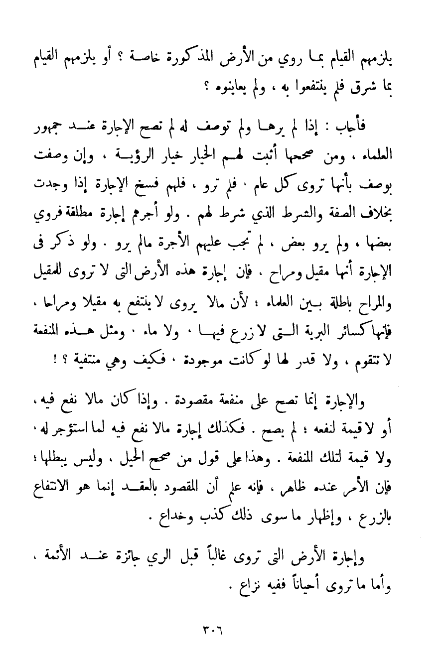 إذَا لَمْ يَرَهَا وَلَمْ تُوصَفْ لَهُ لَمْ تَصِحَّ الْإِجَارَةُ عِنْدَ جُمْهُورِ الْعُلَمَاءِ وَمَنْ صَحَّحَهَا أَثْبَتَ لَهُمْ الْخِيَارَ خِيَارَ الرُّؤْيَةِ وَإِنْ وُصِفَتْ بِوَصْفِ بِأَنَّهَا تُرْوَى كُلَّ عَامٍ فَلَمْ تُرْوَ فَلَهُمْ فَسْخُ الْإِجَارَةِ إذَا وُجِدَتْ بِخِلَافِ الصِّفَةِ وَالشَّرْطِ الَّذِي شَرَطَ لَهُمْ. وَلَوْ أَجَّرَهُمْ إجَارَةً مُطْلَقَةً فَرُوِيَ بَعْضُهَا وَلَمْ يُرْوَ بَعْضٌ لَمْ تَجِبْ عَلَيْهِمْ الْأُجْرَةُ مَا لَمْ يُرْوَ. وَلَوْ ذَكَرَ فِي الْإِجَارَةِ أَنَّهَا مَقِيلٌ وَمَرَاحٌ فَإِنَّ إجَارَةَ هَذِهِ الْأَرْضِ الَّتِي لَا تُرْوَى لِلْمَقِيلِ وَالْمَرَاحِ بَاطِلَةٌ بَيْنَ الْعُلَمَاءِ؛ لِأَنَّ مَا لَا يُرْوَى لَا يُنْتَفَعُ بِهِ مَقِيلًا وَمَرَاحًا فَإِنَّهَا كَسَائِرِ الْبَرِيَّةِ الَّتِي لَا زَرْعَ فِيهَا وَلَا مَاءَ وَمِثْلُ هَذِهِ الْمَنْفَعَةِ لَا تَتَقَوَّمُ وَلَا قُدِّرَ لَهَا لَوْ كَانَتْ مَوْجُودَةً فَكَيْفَ وَهِيَ مُنْتَفِيَةٌ وَالْإِجَارَةُ إنَّمَا تَصِحُّ عَلَى مَنْفَعَةٍ مَقْصُودَةٍ. وَإِذَا كَانَ مَا لَا نَفْعَ فِيهِ أَوْ لَا قِيمَةَ لِنَفْعِهِ؛ لَمْ يَصِحَّ. فَكَذَلِكَ إجَارَةُ مَا لَا نَفْعَ فِيهِ لِمَا اُسْتُؤْجِرَ لَهُ وَلَا قِيمَةَ لِتِلْكَ الْمَنْفَعَةِ. وَهَذَا عَلَى قَوْلِ مَنْ صَحَّحَ الْحِيَلَ وَلَيْسَ يُبْطِلُهَا؛ فَإِنَّ الْأَمْرَ عِنْدَهُ ظَاهِرٌ فَإِنَّهُ عَلِمَ أَنَّ الْمَقْصُودَ بِالْعَقْدِ إنَّمَا هُوَ الِانْتِفَاعُ بِالزَّرْعِ وَإِظْهَارُ مَا سِوَى ذَلِكَ كَذِبٌ وَخِدَاعٌ. وَإِجَارَةُ الْأَرْضِ الَّتِي تُرْوَى غَالِبًا قَبْلَ الرَّيِّ جَائِزَةٌ عِنْدَ الْأَئِمَّةِ وَأَمَّا مَا تُرْوَى أَحْيَانًا فَفِيهِ نِزَاعٌ.