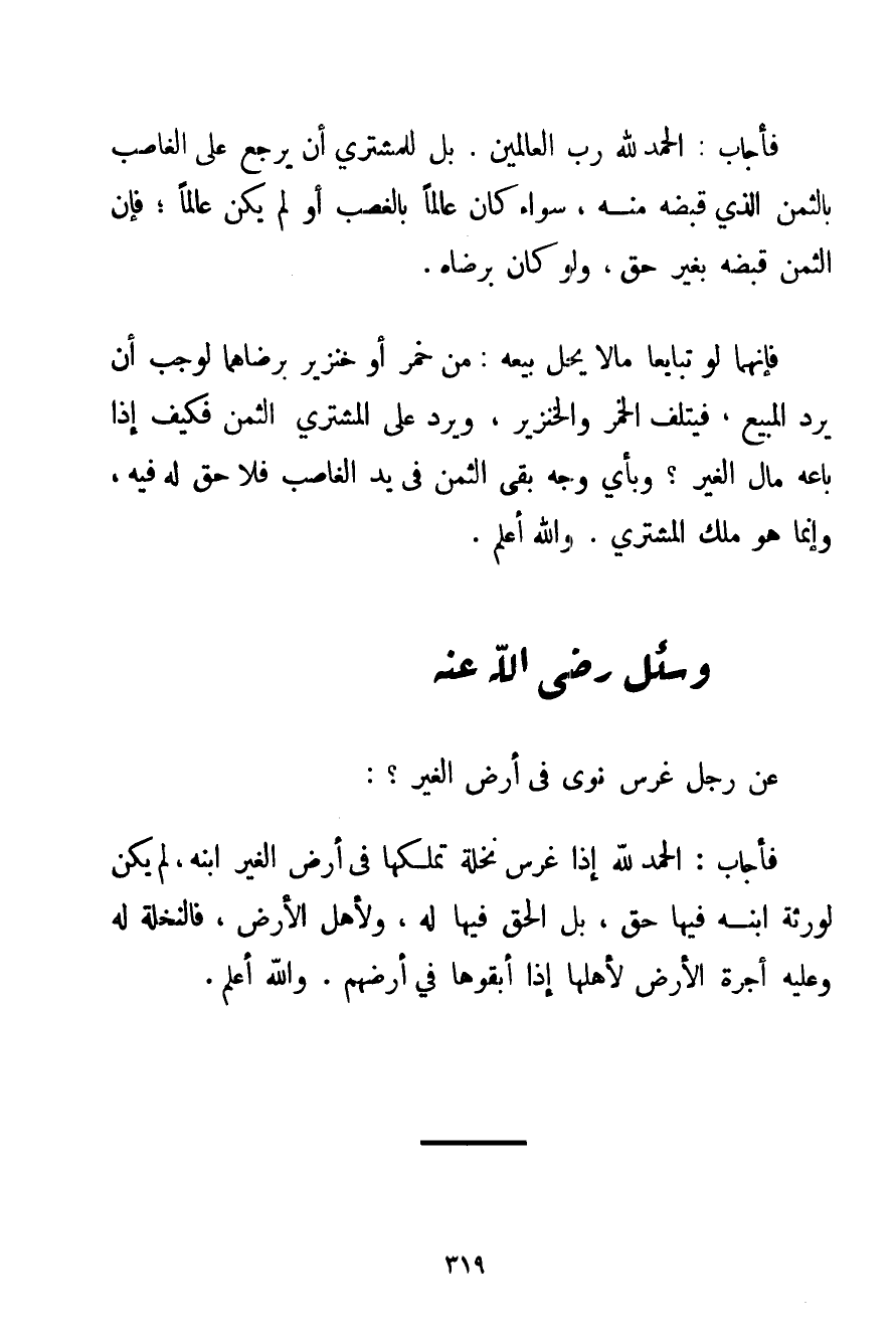 عَنْ رَجُلٍ غَرَسَ نَوًى فِي أَرْضِ الْغَيْرِ؟ :