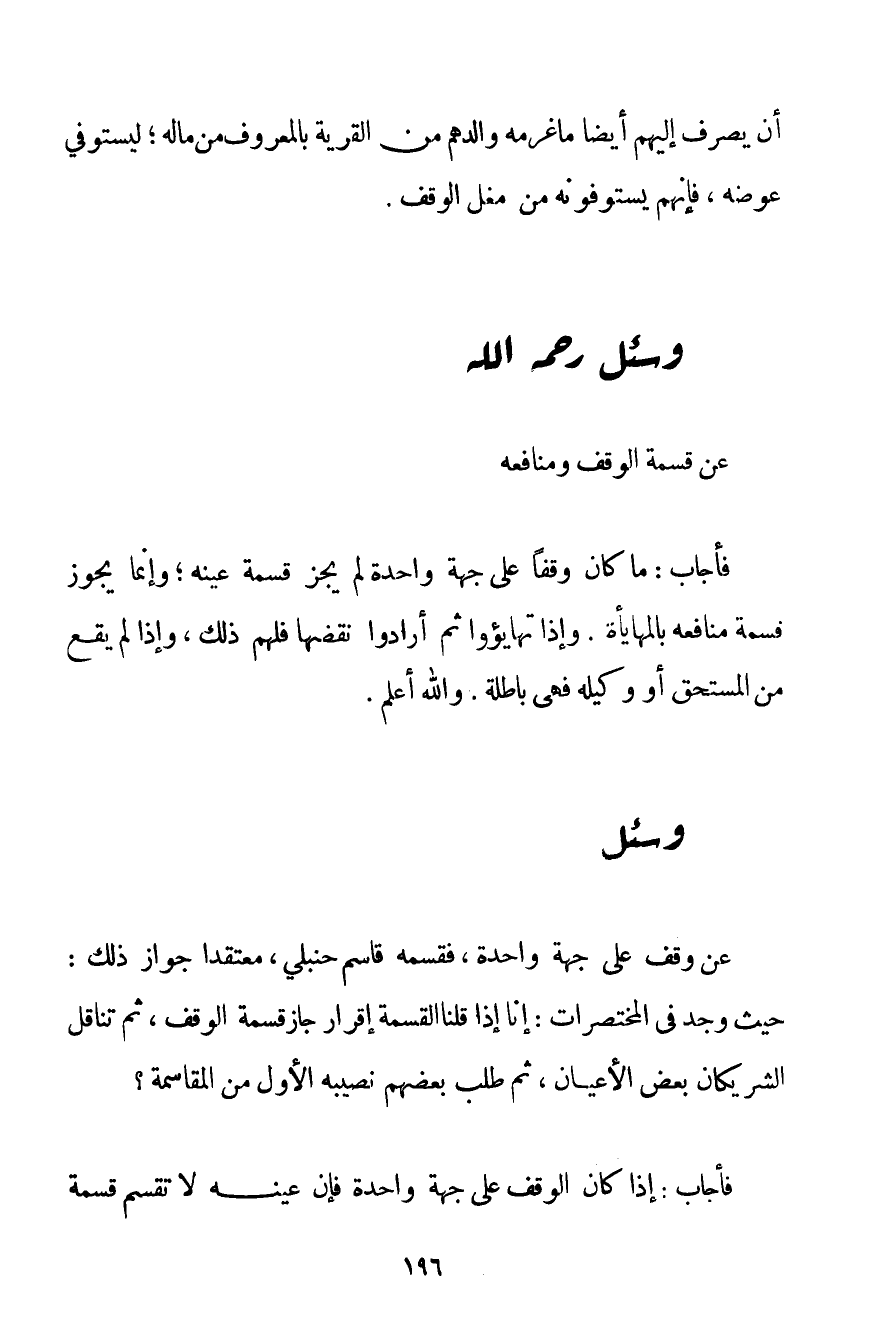 عَنْ قِسْمَةِ الْوَقْفِ وَمَنَافِعِهِ