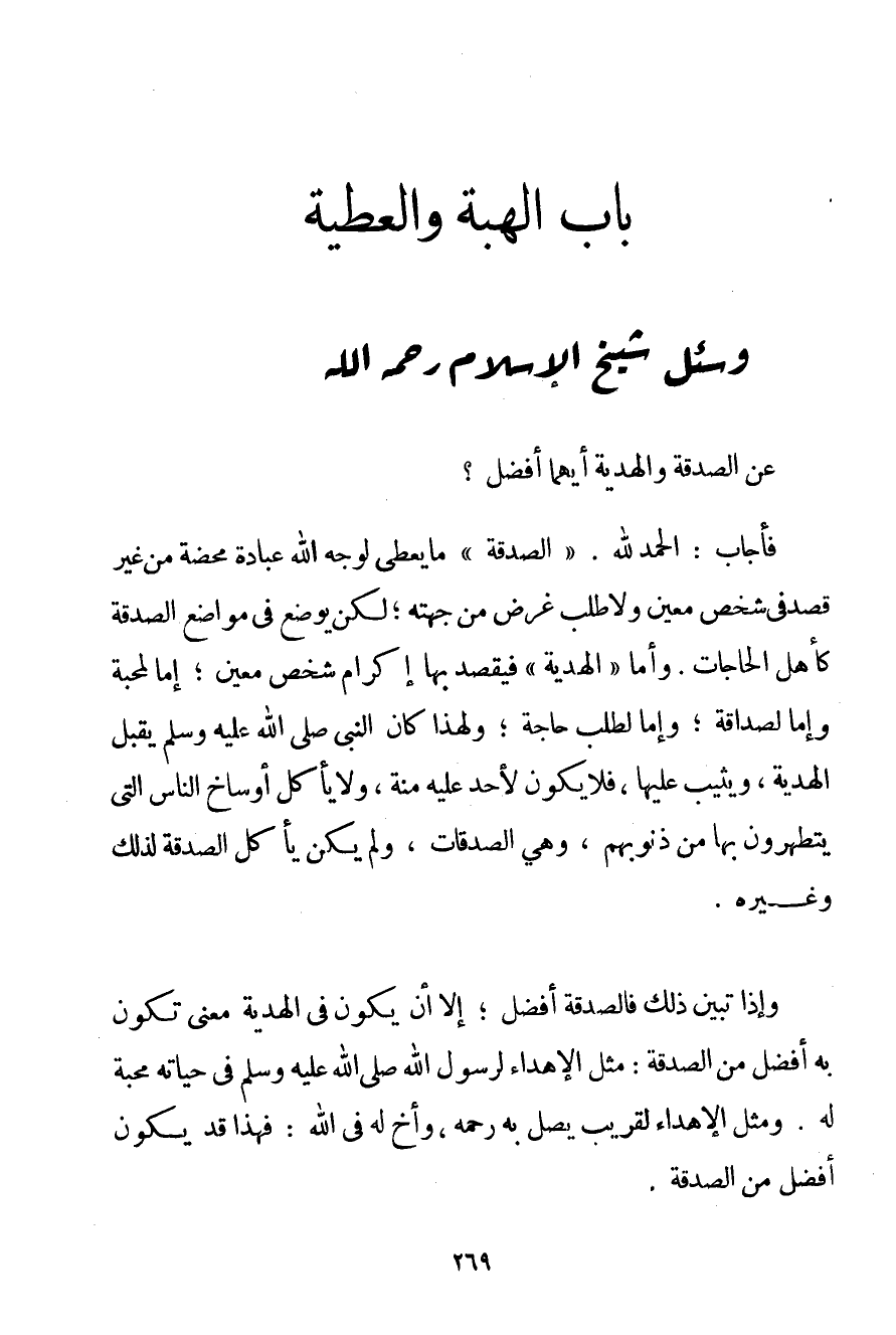 عَنْ الصَّدَقَةِ وَالْهَدِيَّةِ أَيُّهُمَا أَفْضَلُ؟