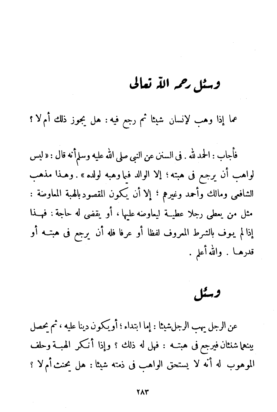 عَمَّا إذَا وَهَبَ لِإِنْسَانِ شَيْئًا ثُمَّ رَجَعَ فِيهِ: هَلْ يَجُوزُ ذَلِكَ أَمْ لَا؟