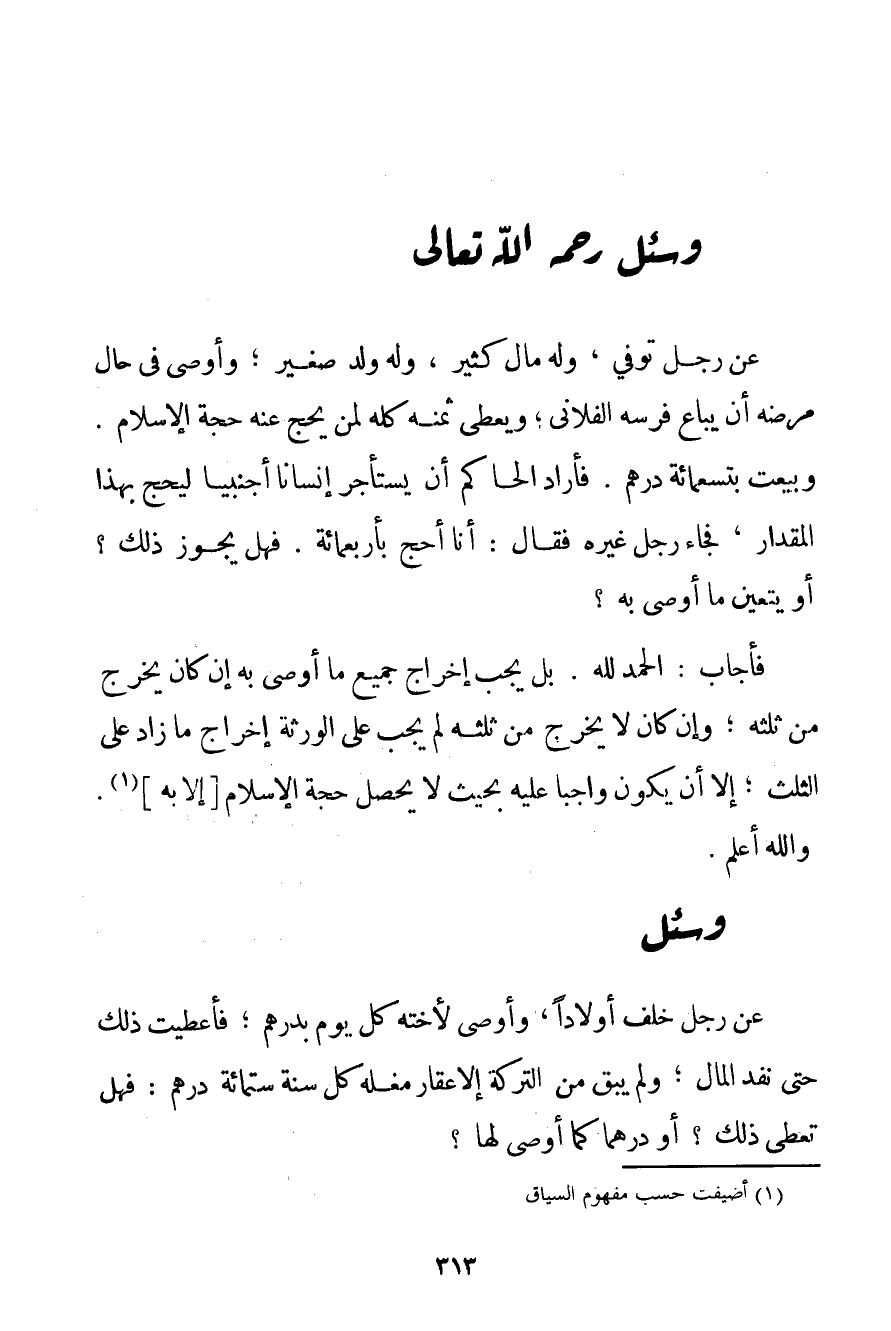 الْحَمْدُ لِلَّهِ، بَلْ يَجِبُ إخْرَاجُ جَمِيعِ مَا أَوْصَى بِهِ إنْ كَانَ يَخْرُجُ مِنْ ثُلُثِهِ؛ وَإِنْ كَانَ لَا يَخْرُجُ مِنْ ثُلُثِهِ لَمْ يَجِبْ عَلَى الْوَرَثَةِ إخْرَاجُ مَا زَادَ عَلَى الثُّلُثِ؛ إلَّا أَنْ يَكُونَ وَاجِبًا عَلَيْهِ بِحَيْثُ لَا يَحْصُلُ حُجَّةُ الْإِسْلَامِ [إلَّا بِهِ] (1) . وَاَللَّهُ أَعْلَمُ.