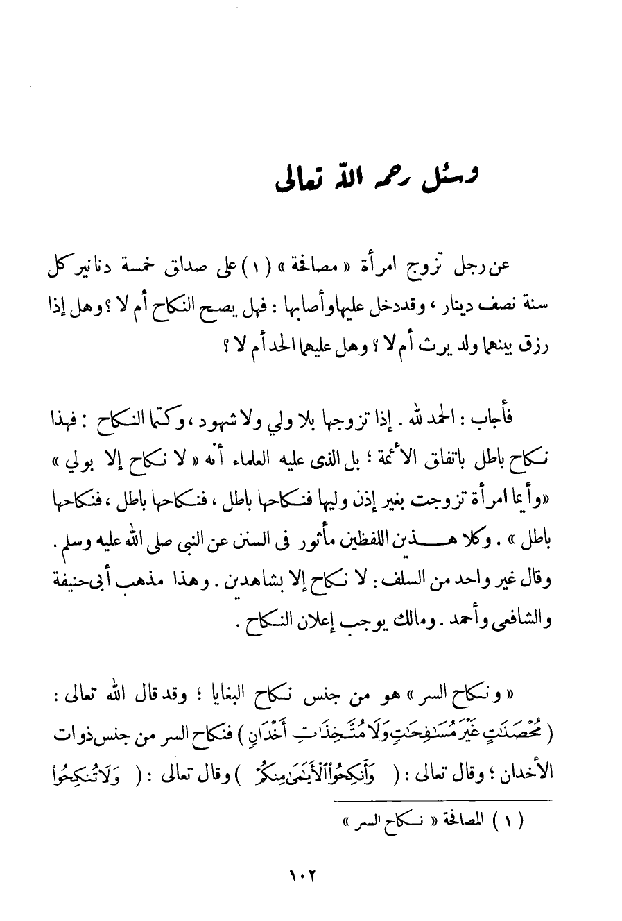 وَسُئِلَ - رَحِمَهُ اللَّهُ تَعَالَى -: