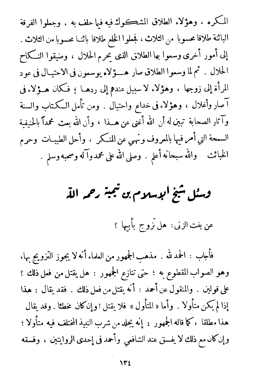 وَسُئِلَ شَيْخُ الْإِسْلَامِ ابْنُ تَيْمِيَّة - رَحِمَهُ اللَّهُ -: