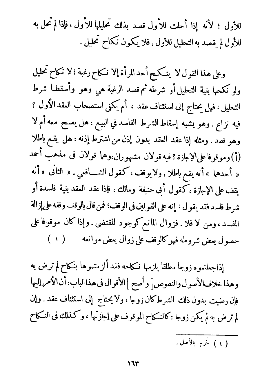 لِلْأَوَّلِ؛ لِأَنَّهُ إذَا أُحِلَّتْ لِلْأَوَّلِ قُصِدَ بِذَلِكَ تَحْلِيلُهَا لِلْأَوَّلِ فَإِذَا لَمْ تَحِلَّ بِهِ لِلْأَوَّلِ لَمْ يُقْصَدْ بِهِ التَّحْلِيلَ لِلْأَوَّلِ فَلَا يَكُونُ نِكَاحَ تَحْلِيلٍ. وَعَلَى هَذَا الْقَوْلِ لَا يَنْكِحُ أَحَدٌ الْمَرْأَةَ إلَّا نِكَاحَ رَغْبَةٍ؛ لَا نِكَاحَ تَحْلِيلٍ وَلَوْ نَكَحَهَا بِنِيَّةِ التَّحْلِيلِ أَوْ شَرَطَهُ ثُمَّ قَصَدَ الرَّغْبَةَ هِيَ وَهُوَ وَأَسْقَطَا شَرْطُ التَّحْلِيلِ: فَهَلْ يَحْتَاجُ إلَى اسْتِئْنَافِ عَقْدٍ أَمْ يَكْفِي اسْتِصْحَابُ الْعَقْدِ الْأَوَّلِ؟ فِيهِ نِزَاعٌ. وَهُوَ يُشْبِهُ إسْقَاطَ الشَّرْطِ الْفَاسِدِ فِي الْبَيْعِ: هَلْ يَصِحُّ مَعَهُ أَمْ لَا وَهُوَ قَصْدٌ. وَمِثْلُهُ إذَا عَقَدَ الْعَقْدَ بِدُونِ إذْنِ مَنْ اشْتَرَطَ إذْنَهُ: هَلْ يَقَعُ بَاطِلًا أَوْ مَوْقُوفًا عَلَى الْإِجَازَةِ؟ فِيهِ قَوْلَانِ مَشْهُورَانِ وَهُمَا قَوْلَانِ فِي مَذْهَبِ أَحْمَد " أَحَدُهُمَا " أَنَّهُ يَقَعُ بَاطِلًا وَلَا يُوقَفُ كَقَوْلِ الشَّافِعِيِّ. " الثَّانِي " أَنَّهُ يَقِفُ عَلَى الْإِجَازَةِ كَقَوْلِ أَبِي حَنِيفَةَ وَمَالِكٍ فَإِذَا عَقَدَ الْعَقْدَ بِنِيَّةِ فَاسِدَةٍ أَوْ شَرْطٍ فَاسِدٍ فَقَدْ يَقُولُ: إنَّهُ عَلَى الْقَوْلَيْنِ فِي الْوَقْفِ؛ فَمَنْ قَالَ بِالْوَقْفِ وَقَفَهُ عَلَى إزَالَةِ الْمُفْسِدِ وَمَنْ لَا فَلَا. فَزَوَالُ الْمَانِعِ كَوُجُودِ الْمُقْتَضِي. وَإِذَا كَانَ مَوْقُوفًا عَلَى حُصُولِ بَعْضِ شُرُوطِهِ فَهُوَ كَالْوَقْفِ عَلَى زَوَالِ بَعْضِ مَوَانِعِهِ. . . (1) .