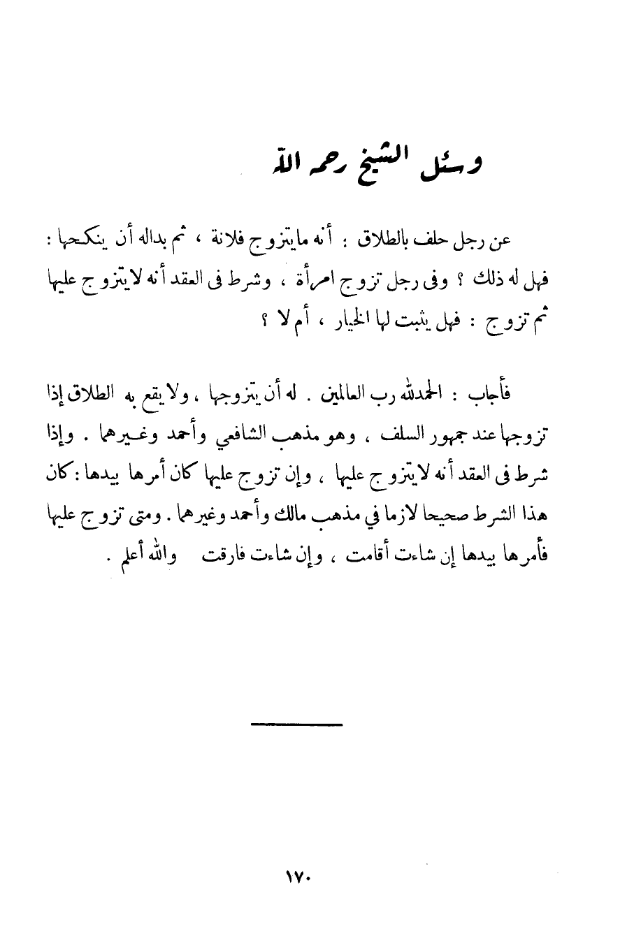 وَسُئِلَ الشَّيْخُ - رَحِمَهُ اللَّهُ -: