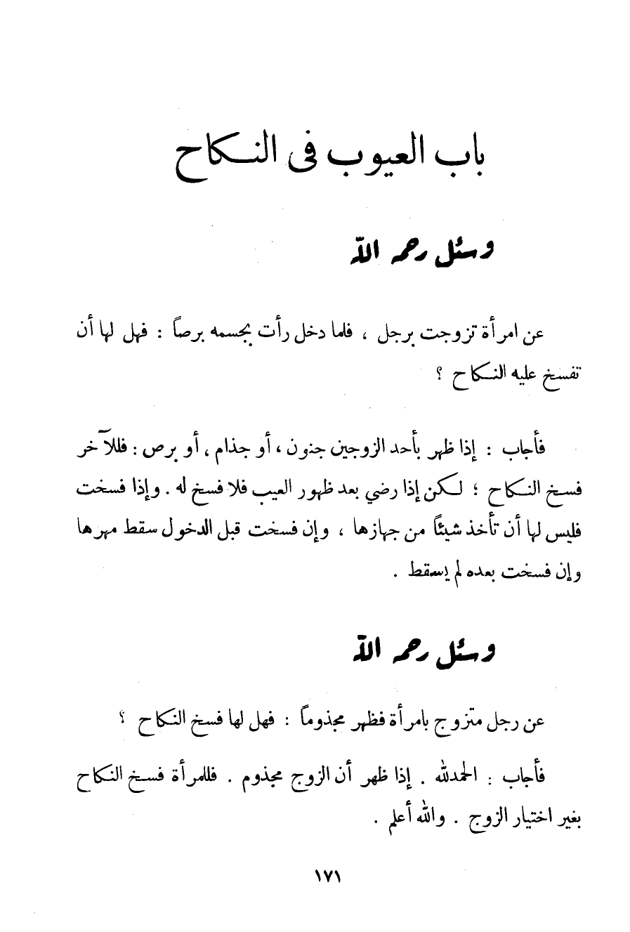 بَابُ الْعُيُوبِ فِي النِّكَاحِ