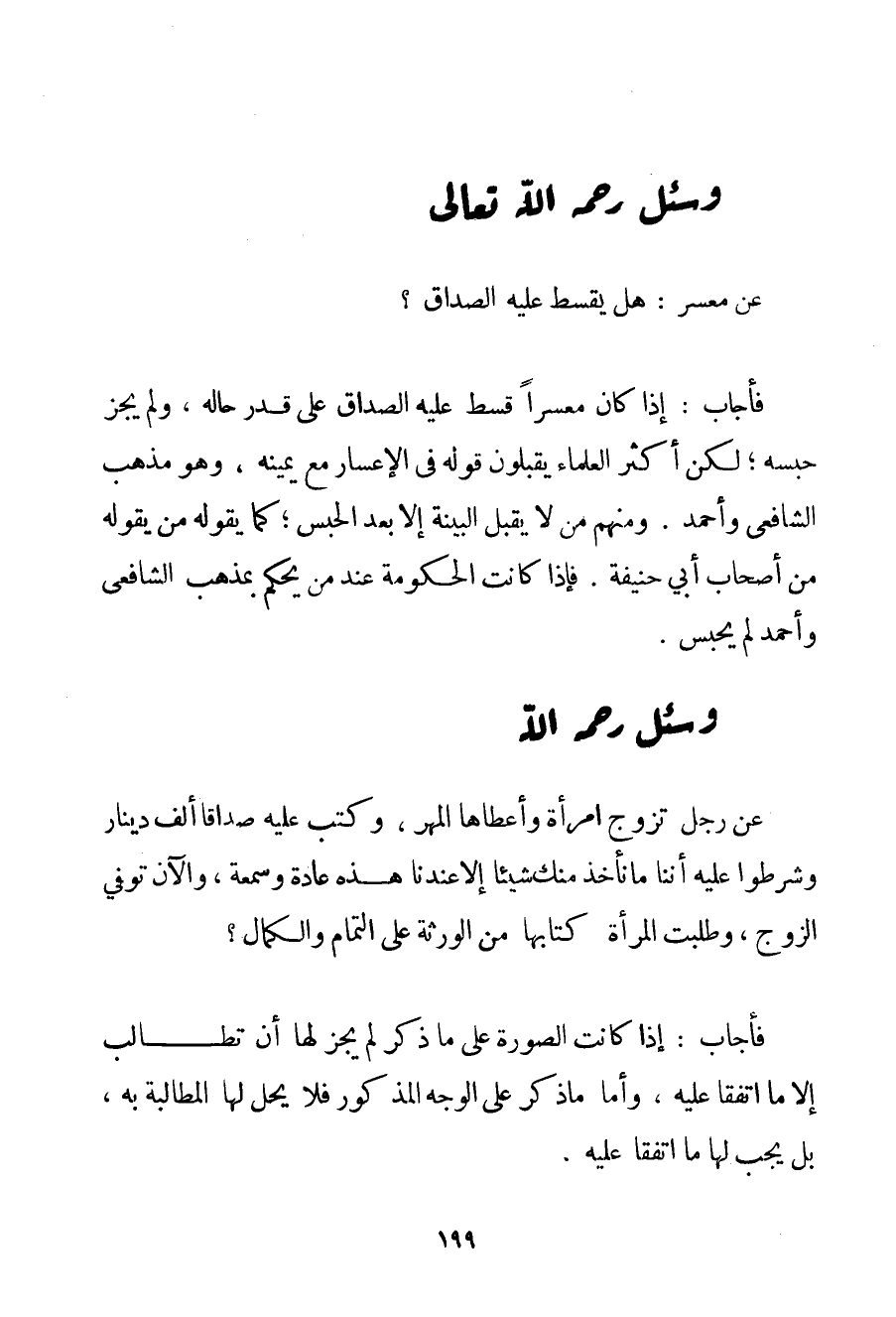 وَسُئِلَ - رَحِمَهُ اللَّهُ -: