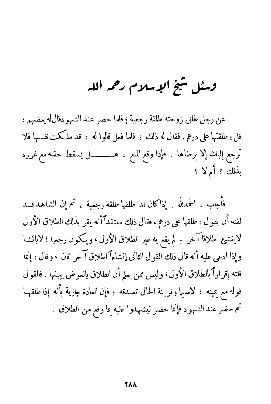 وَسُئِلَ شَيْخُ الْإِسْلَامِ - رَحِمَهُ اللَّهُ -: