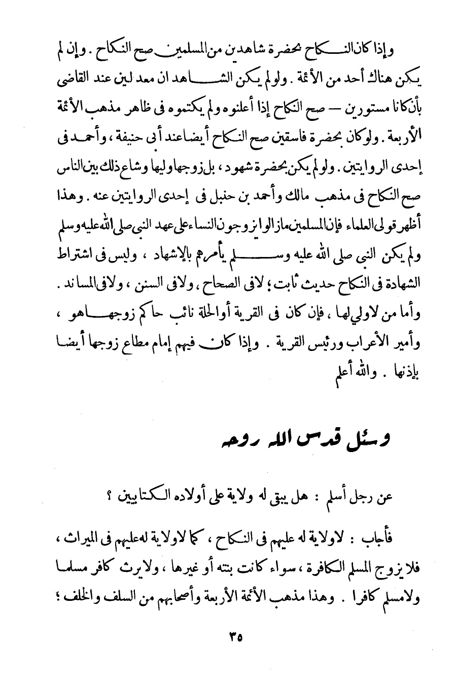 وَسُئِلَ - قَدَّسَ اللَّهُ رُوحَهُ -: