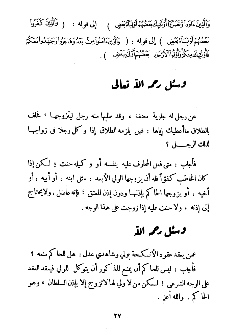 وَسُئِلَ - رَحِمَهُ اللَّهُ تَعَالَى -:
