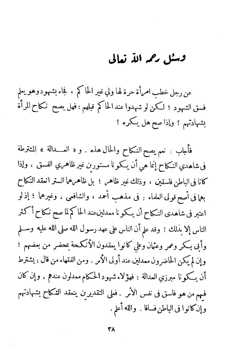 نَعَمْ يَصِحُّ النِّكَاحُ وَالْحَالُ هَذِهِ. و " الْعَدَالَةُ " الْمُشْتَرَطَةُ فِي شَاهِدَيْ النِّكَاحِ إنَّمَا هِيَ أَنْ يَكُونَا مَسْتُورَيْنِ غَيْرَ ظَاهِرَيْ الْفِسْقِ وَإِذَا كَانَا فِي الْبَاطِنِ فَاسِقَيْنِ وَذَلِكَ غَيْرُ ظَاهِرٍ؛ بَلْ ظَاهِرُهُمَا السَّتْرُ انْعَقَدَ النِّكَاحُ بِهِمَا فِي أَصَحِّ قَوْلَيْ الْعُلَمَاءِ: فِي مَذْهَبِ أَحْمَد وَالشَّافِعِيِّ وَغَيْرِهِمَا؛ إذْ لَوْ اُعْتُبِرَ فِي شَاهِدَيْ النِّكَاحِ أَنْ يَكُونَا مُعَدَّلَيْنِ عِنْدَ الْحَاكِمِ لَمَا صَحَّ نِكَاحُ أَكْثَرِ النَّاسِ إلَّا بِذَلِكَ وَقَدْ عُلِمَ أَنَّ النَّاسَ عَلَى عَهْدِ رَسُولِ اللَّهِ صَلَّى اللَّهُ عَلَيْهِ وَسَلَّمَ وَأَبِي بَكْرٍ وَعُمَرَ وَعُثْمَانَ وَعَلِيٍّ كَانُوا يَعْقِدُونَ الْأَنْكِحَةَ بِمَحْضَرِ مِنْ بَعْضِهِمْ؛ وَإِنْ لَمْ يَكُنْ الْحَاضِرُونَ مُعَدَّلَيْنِ عِنْدَ أُولِي الْأَمْرِ. وَمِنْ الْفُقَهَاءِ مَنْ قَالَ: يُشْتَرَطُ أَنْ يَكُونَا مُبْرِزَيْ الْعَدَالَةِ: فَهَؤُلَاءِ شُهُودُ الْحُكَّامِ معدلون عِنْدَهُمْ وَإِنْ كَانَ فِيهِمْ مَنْ هُوَ فَاسِقٌ فِي نَفْسِ الْأَمْرِ. فَعَلَى التَّقْدِيرَيْنِ يَنْعَقِدُ النِّكَاحُ بِشَهَادَتِهِمْ وَإِنْ كَانُوا فِي الْبَاطِنِ فُسَّاقًا. وَاَللَّهُ أَعْلَمُ.