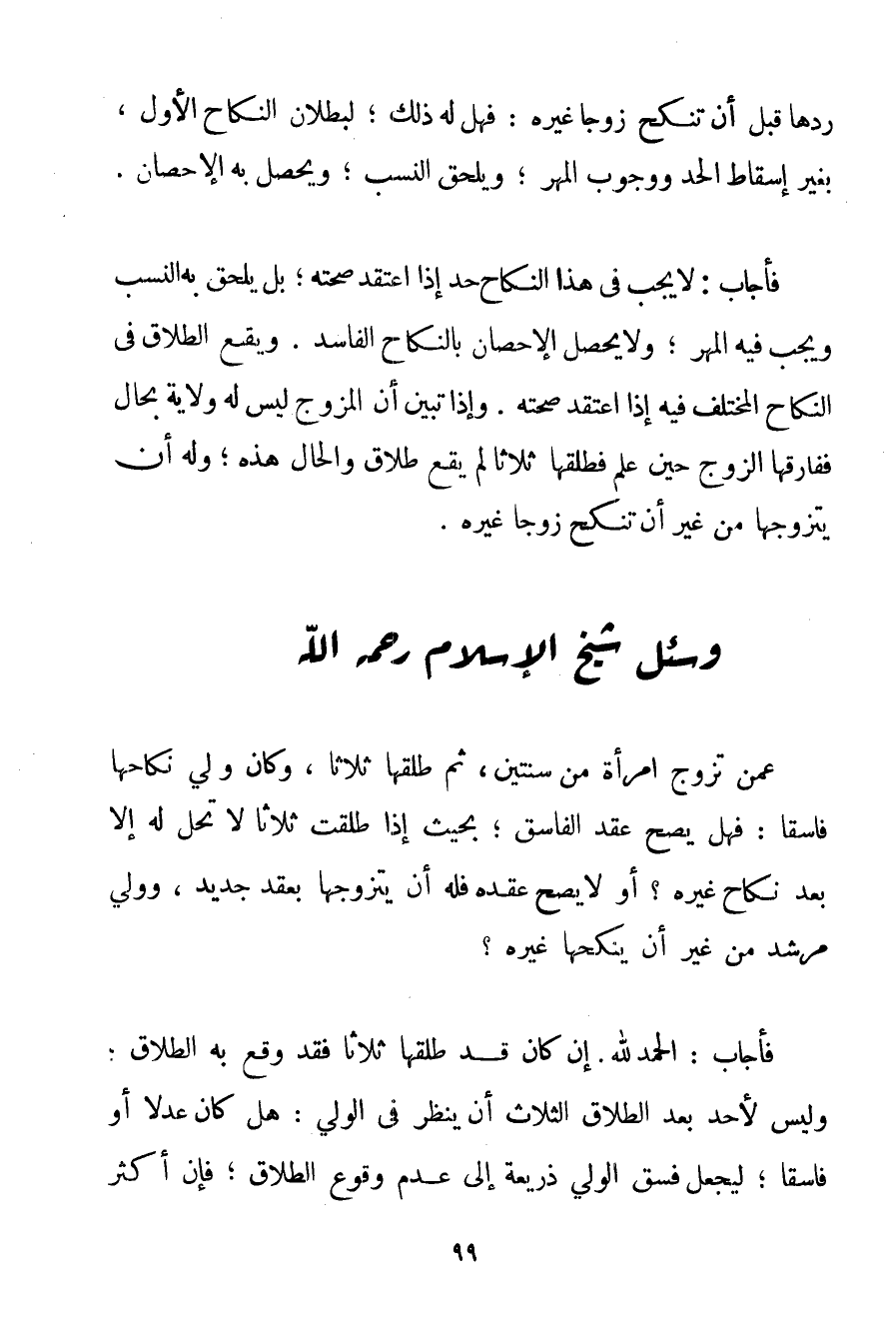 وَسُئِلَ شَيْخُ الْإِسْلَامِ - رَحِمَهُ اللَّهُ -: